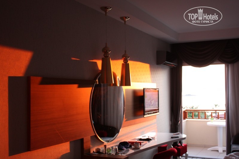 Всем доброго времени суток! В целом - всё понравилось!) это чтоб совсем кратко) Теперь разверну)) >> Расселение - в туре был оплачен номер стандарт, заселили в эконом! Вид во двор и моря не видно никаким боком, развернулась в сторону ресепшена. Объяснила , что я звонила перед покупкой тура непосредственно в отель для уточнения что такое эконом и мне объясняли что это вид на окрестности. Так же уточнила что номер стандарт стоил на 4 тысячи дороже, так что .."будьте так добры, пожалуйста!" Оказались добры - дали с самым прямым видом на море! :) Нюанс - нас трое, 2 взр и дите, первый номер что дали - имел 2 одноместные кровати ... Для ребенка предполагалась раскладушка (хотя как я поняла по сути это такая же кровать с толстым матрасом, но на раскладной конструкции), в интернете смотрела много разных фотографий номеров - имела представление какие есть номера, такие же стандарты но с 2 спальной кроватью и еще одной одноместной. Когда номер поменяли ..так и вышло. На этом спасибо. Номер очень красивый, стильный. Что так же очень порадовало, это мини уголок с холодильником, столом, чайником! Мини-мини кухня) Но это не во всех номерах, в каких то номерах холодильник стоял у туалетного столика. В общем расселение дело тонкое, купили стандарт, еще вовсе не значит что Вас туда поселят.. требуйте хотя бы бокового вида на море. Эконом - это вид на окрестности. Хотя в сложившейся ситуации с Теодорой, хорошо если Вам вообще достанется хоть какой то номер в этом отеле. Если что то интересует еще по номеру - спрашивайте. Питание - впечатлило!!! (по сравнению с тем. что было в 2007 году, когда я ездила последний раз и все предыдущие разы что я была в Турции) последний раз кстати была в Парк Конти того же Джустиниано.. где максимум курица..и всякая штуковина в кляре. Первое это - ассортимент мяса. Курица, говядина, баранина! Для Турции вполне не плохо) все вкусненько, подливочки, овощи.. грибочки -ммм... запеченные вообще класс)) Классические гарниры на выбор, в общем разнообразие было. Всякие соусы, стол с маринадами - не пробовала, большой выбор травяных салатов, майонезных и тд. Сладости, помимо классических турецких просиропленных хлебных пирожных, так же отличались разнообразием. Не каждый день, но были замечены такие штуки как Брауни -оххх..,. шоколадное воздушное пирожное мусс.. нежнейшие торты.. В последний день появились какие то восточные сладости слоеные микроштучки) Из фруктов скудновато..яблоки и апельсины, но наверно не сезон. В посл день была клубника. Сладкоежкам рекомендую, на завтраке - такую цвета неожиданности ореховую пасту...она невероятна!)) Стоит рядом со всеми сиропами) Перекусы в промежутках есть на море.. лепешки, картофель фри, травки, овощи. Мороженое не застали. Территория - у самого отеля..конечно по сравнению с тем же Парк конти, - скромновата, но окружающий ландшафт и многое другое оказывают достойную компенсацию. Я бы сказала, сдержанная такая территория, НО .. все необходимое у отеля есть, все рядом - а это очень большой плюс!!! от моря до отеля..если нужно сбегать..все рядом и быстро, что конечно не скажешь про Теодору.. придется прогуляться. Детский бассейн открыт :/ находясь там в апреле и пользуясь защитными кремами могу сказать что солнце однако очень кусачее..ребенок, как не защищали - обгорел, поэтому рекомендовала бы отелю обзавестись тентом у детского бассейна. 