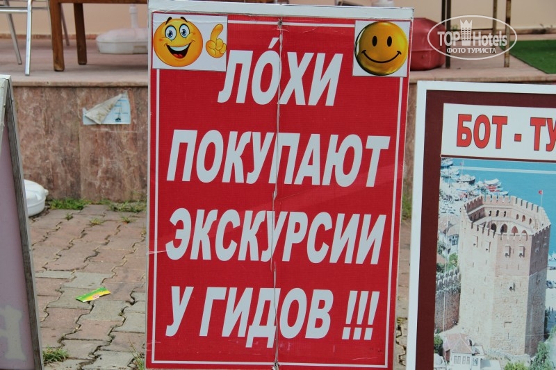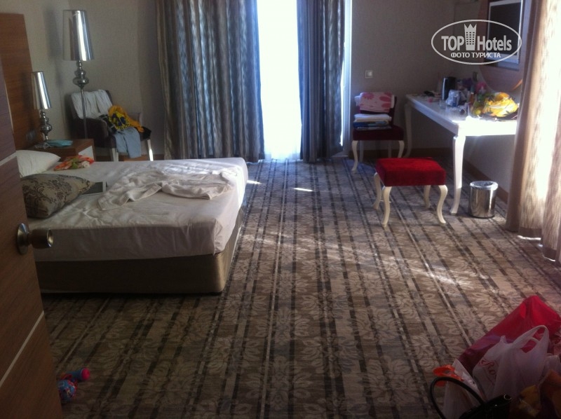 О плюсах писать не буду, они мало кому интересны. Скажу лишь отдельное спасибо Огажану за шикарный номер и девушке с ресепшн (забыл как зовут, предположительно родом из Казахстана, сорри) за оперативное реагирование и доброжелательность. Так вот о минусах: Сразу замечу, что все ниже перечисленные минусы никак не относятся к персоналу отеля (за исключением уборщицы), все эти минусы на совести хозяина отеля и управляющего им. Если я правильно понял, то отель не закончен и зимой будут достраивать ещё один корпус, напротив дикого пляжа. Что же мы имеем сейчас)): - У отеля появился ещё один корпус (Теодора), а ресторан рассчитан лишь на ДеЛюкс. В купе с нашими соотечественниками, это превращается в голодный край и погоней за столиком. За 10 минут до начало ужина, ресторан заполнен на 75-80% славянами на низком старте)) - Во время ужина, уборкой со столов на улице, фактически занимается два человека. Как итог, постоянно бьющаяся посуда и грязные столы. Ну а для второго захода "жрущих" - отсутствие вилок, ложечек для кофе, соли, перца, салфеток.... - Лифт ДеЛюкса - там постоянные очереди! Дело в том, что их всего два и они явно не рассчитаны на такую нагрузку, ведь Теодора пользуется этими же лифтами при желании покушать. Конечно, из Теодоры можно ещё спуститься напрямую к ресторану по крутой, кривой и полностью неосвещённой дороге, на которой кстати, я сильно поранил ногу. Поэтому, кроме молодёжи (которой там кстати мало) почти никто и не ходил. - Пляж. Пляж, это что-то усеянное сигаретными окурками вперемешку с камнями и катастрофически маленьким количеством лежаков. Я неоднократно обращался на ресепшн с просьбой действительно забирать вещи с пляжа оставленные на ночь! Так как особо одарённые наши соотечественники, занимали лежаки с вечера, причём на себя и на того парня сразу. На весь пляж всего ОДНА! передивалка и два полужевых душа. - Бара у пляжа нет! - Бассейн ДеЛюкса. Это не бассейн, это лужа с мятым линолеумом на дне и возможностью переломаться при попытке пойти к бару. - Бассейн Теодоры - ледяная вода и местами тухловатый запах! - Анимация. Анимации в ДеЛюксе и в Теодоре нет. За анимацией необходимо ходить в соседнюю четверку. - Выпивка - приметив, никакого ультра там нет. За Ультру они выдают круглосуточную работу бара у главного ресепшн. Перебои со светом: В отели очень часто отключают свет. На этот случай правда предусмотрительно стоят генераторы, но Вы представляете, какой они шум создают?)) В принципе, это мелочь, за исключением того, что постоянно кто-то на некоторое время в лифте застревает и живущие рядом с генераторами разговаривают с помощью рупора) особенно жалко один из корпусов соседней четверки, около которого стоят сразу два основных генератора. - Дорога от Теодоры до Делюкса. Сама дорога терпимая, а вот, то что по этой узкой тропинке постоянно едут автобусы и другие машины, напрягает очень сильно! Я даже пару раз останавливал машины и просил подъезжать к Делюксу через верхнюю дорогу, а не пугать детей разъезжая по пешеходке. И мне не понятно, почему руководство отеля не направляет транспорт по верхней объездной дороге, а разрешает ездить по пешеходной дороге. Наверно плевать. - Территория отеля - лысая и абсолютно неинтересная. У соседнего Джустиниано клаба (четверка) есть хотя бы много зелени и нормальные тропинки. - Еда. Еды мало и голодный кра
