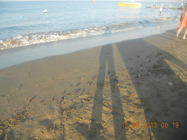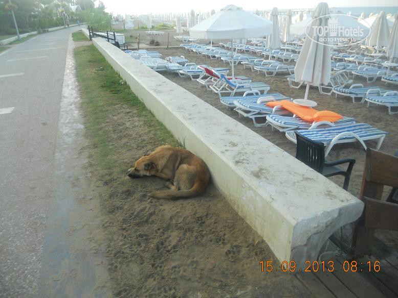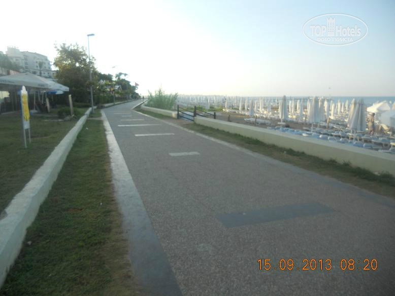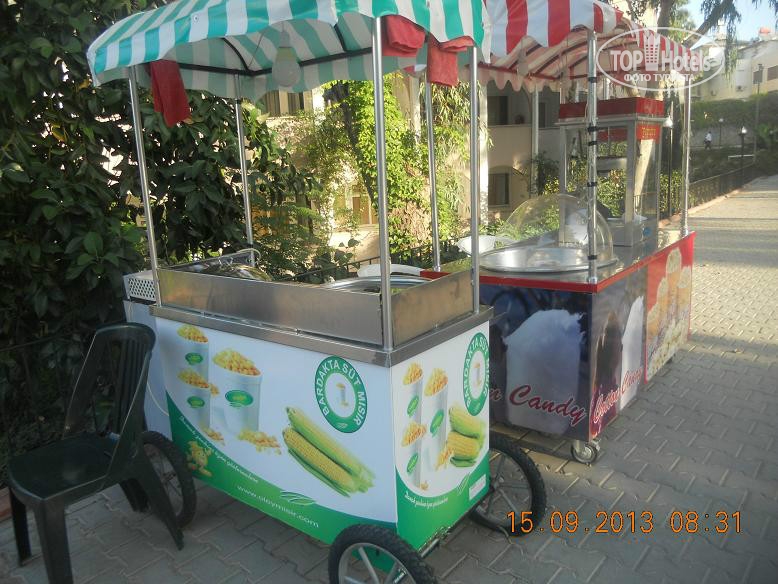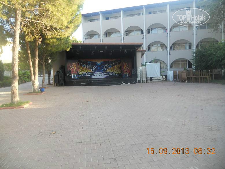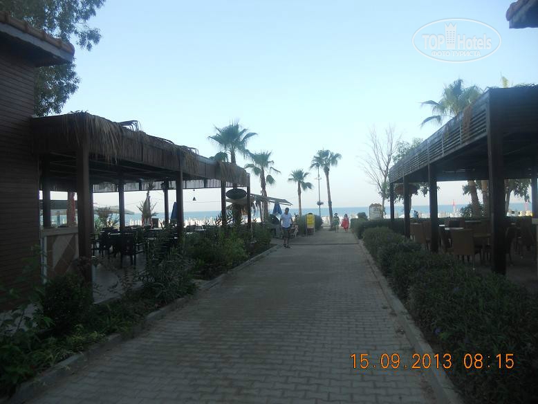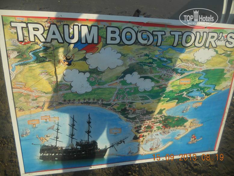 Всем привет, решившим познакомиться с нашим мнением. Скобари, это Псковичи, вот откуда нас занесло. город небольшой, народ простой, неизбалованный, в отличие от некоторых ;) намек понят? ну, погнали! тут даже рифма родилась : отзыв - не отзыв, рассказ - не рассказ, напечатаем для Вас. прибыли Мы (папа, мама, доча 5,5лет) 07.09 в 18-45 в аэропорт Анталии. в 19-00 уже в автобусе. ехали от Тез-Тура. у них все оргназовано на отлично (ВНИМАНИЕ!!! не реклама!!!, так уж оператор нам попался при выборе путевки). в отеле были в 20-40 нас сразу обраслетили и проводили в столовую на ужин. поесть было что и с дороги мы свой голод накопившейся на все 100 утолили. по выходу из столовой нас расселили. как Вы уже, наверное, начитались в имеющихся отзывах, соглашусь, жить во 2 и 3 корпусах лучше. без доплат и споров нас поселили в номер 3403 (третий корпус четвертый этаж номер 3). НОМЕР: нас устроил! чистый, достаточно места, комфортный! УважаемыеЕЕЕ!! Вы же в 4* приехали, будьте реалистами и не пишите хрень про неудобства! фото прилагаю. итак, как написал, кровать для мамы+папы и однушка для чада. рядом тумбы, пара стульев, трюмо со встроенным холодильником, не морозит, правда, и если Вы пельмени планируете хранить, Вам будет некомфортно, но напиток из дьютика, по крайней мере у меня, был всегда холодненький, что не могло не рабовать . на стене плазма, которая, к сожалению, отказалась читать привезенный диск с мамапапиными фильмами и ребенкиными мультами ;) приходилось пялиться в бук... ну да ладно, мелочь! на входе шкаф бельевой, на одной полке стоит сейф. платный. 1,5 бакса в сутки. мы не пользовались. переодевки было достаточно. припрятали, поприжали, подзакрыли в чемодане ценные вещи и не парились. кто боится - дверь с собой бронированную с пуленепробываемым глазком везите :) ТА ДА ДА ДАМ ванная комната! многих, наверняка интересует что же там?! о ужас! почитал я написанный совсем недавно кем то отзыв, так у людей, представляете!, тссс, канализацией пахло!!! О! ДА! если Вы набухавшись по-русски, уснете с унитазом в обнимку, есесенно запахнет! Дальше, помните, начальные выпуски comedy club, где Галыгин про туалет говорил, что он ассоциируется с Голландией,, потому что неровно положенный кафель клали какие-то пи...сы :) ЧТО КАСАЕТСЯ НАШЕГО НОМЕРА все было ОТЛИЧНО! чисто и аккуратно и РОВНО в санузле зеркало с полочкой, полотенцедержатель, пара крючков на дверях (КСТАТИ!, слышал недовольство какого то, простите жителя Столицы знакомой страны... номер ужас! в ванне всего 2 крючка, полотенца висят, так мне плавки, говорит, повесить некуда!... no comments…) в ванне фен маленький, бюджетненький..., дует унитаз ЧИСТЫЙ, если Вы сами за собой щеточко вжик вжик... про душ напишу так... жаль, конечно, что нет, хотя бы душевого поддона. в полу сделано небольшое заглубление на 3-5 см. кафельное. да, брызгается, но если вам не сложно, делючь нашей хитростью (кстати в каком то отзыве автор так же использовал этот способ) полотенце для ног постелить на пол и наслаждаться чистотой и сухостью в Вашем сан.узле. да, кому любопытно... два диспенсера для жидкого моющего средства. у зеркала - мыло, в душе - для геля для душа. аромат обалденный. так что, сравновать только Вам! как просит модератор ТЕРРИТОРИЯ ОТЕЛЯ , ПЕРСОНАЛ территрия неюольшая, как и во многих отелях Турции, но уютная. пара бассейнов, кафель, дорожка из тротуарной плитки, которую не моют от птичь