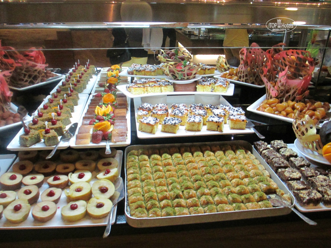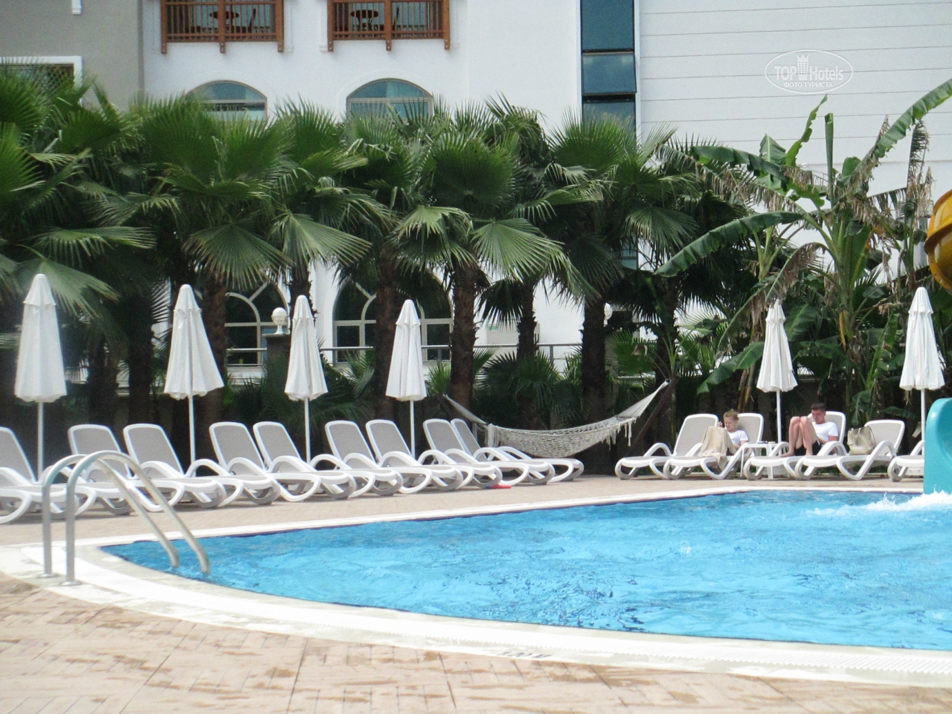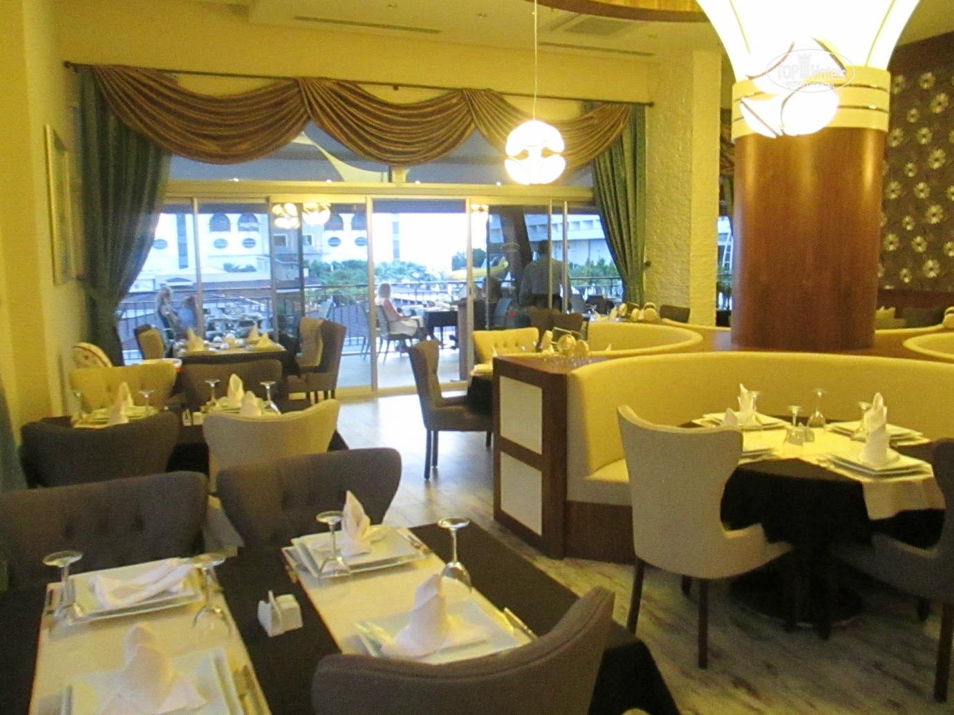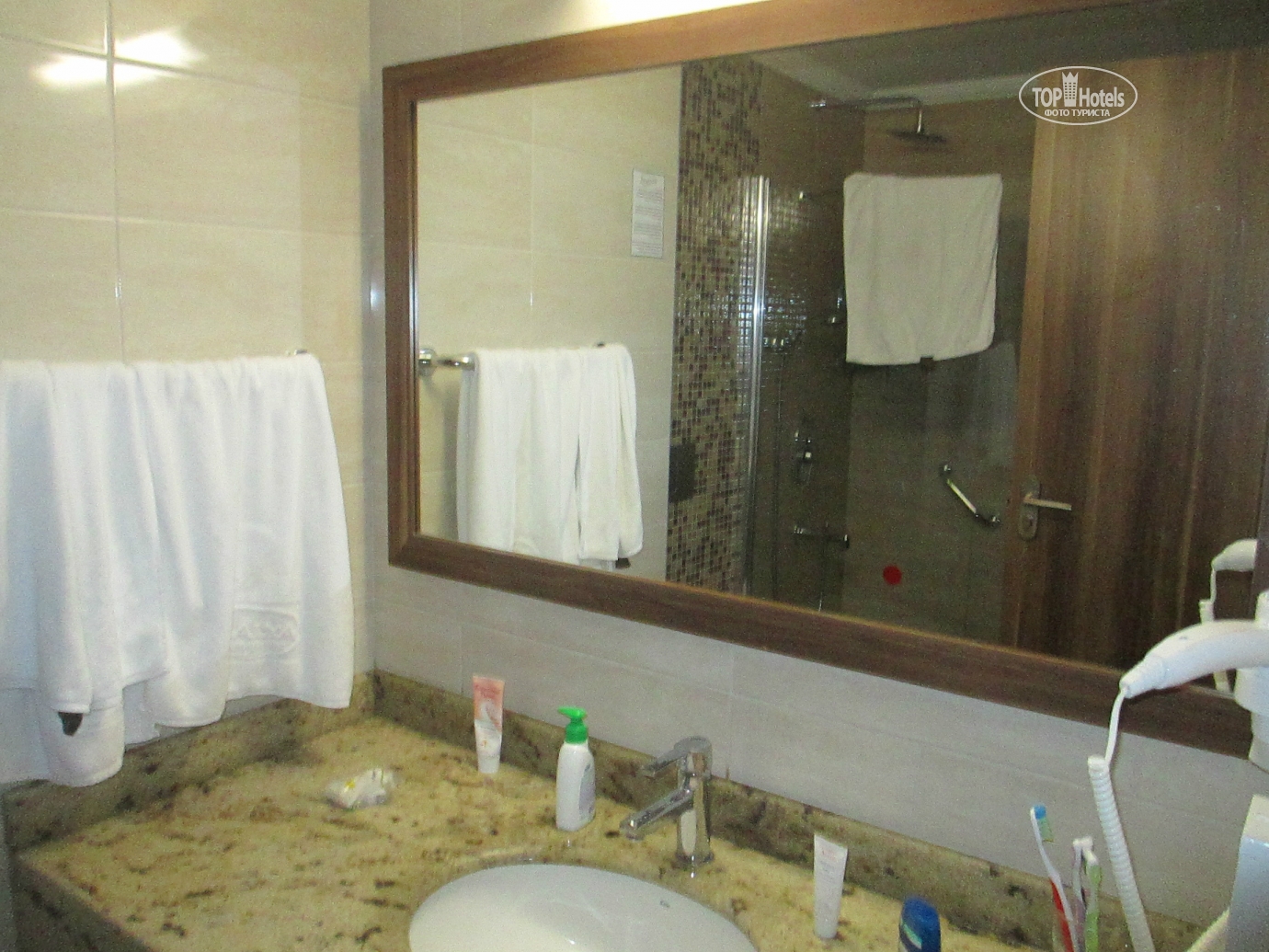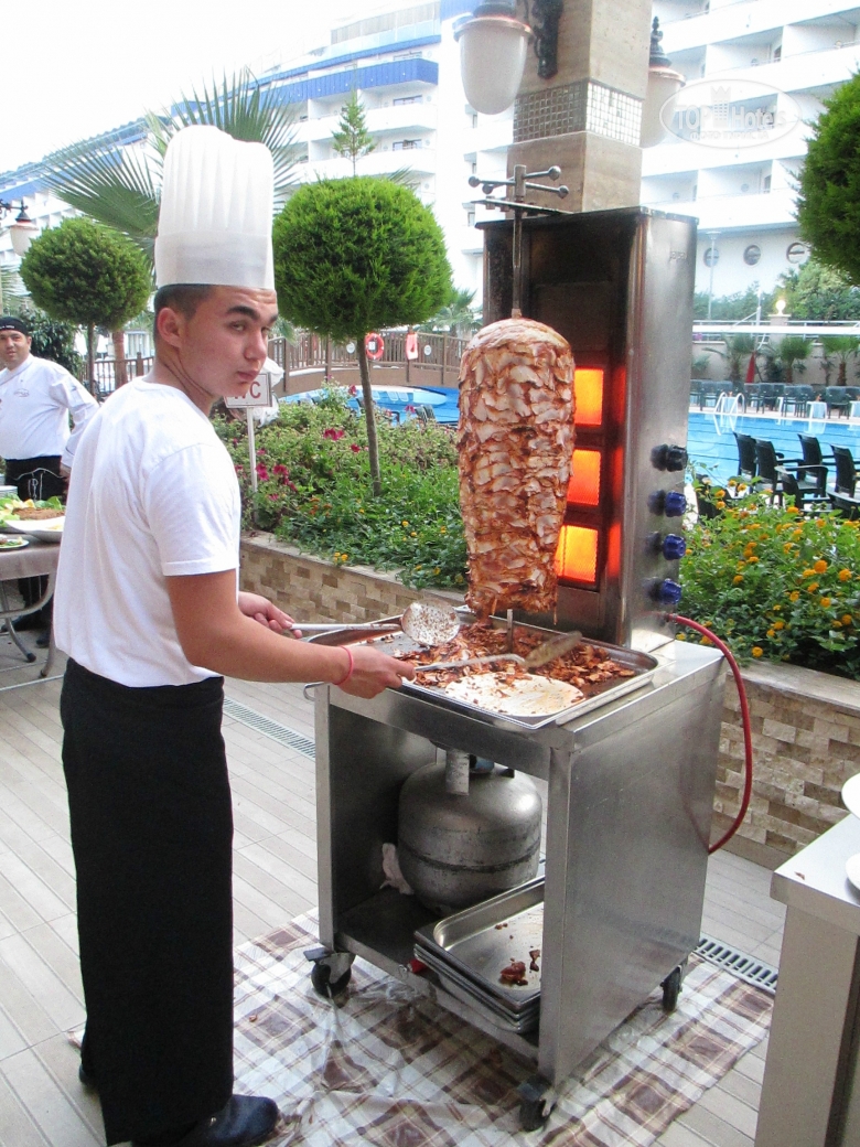 Добрый день! Отдыхали в отеле в мае с мужем и дочерью . Сказать, что нам понравилось, это ничего не сказать! Отель просто замечательный! Все новенькое ,чистое, безумно красивое. Номера просторные , с удобными кроватями . Вокруг зеркал подсветка, ящики прикроватных тумбочек с доводчиками. К уборке никаких нареканий: полы мыли каждый ,полотенца меняли ,постельное белье тоже. Каждый день приносили 1,5 литра чистой питьевой воды в бутылке. По приезду мини бар был заполнен колой, фантой , спрайтем и минеральной водой. Дальнейшее заполнение платное. Мы приехали в 12.00,сразу же надели браслеты и предложили пройти на обед, заселение обещали не раньше 14.00,нас это нисколько не расстроило, т.к. это международные правила размещения. На ресепшене никто по-русски не говорит, даже по-английски с трудом, в основном на турецком и немецком. Питание в отеле это отдельная тема, выше всяких похвал. Каждый день были вкуснейшие блюда: говядина, баранина, телятина , конечно курица и индейка, разные виды рыбы, иногда на гриле .Много овощей и закусок .А сладкий стол просто поражал своим многообразием!!! Из фруктов были яблоки , апельсины, грейпфруты, клубники , к сожалению не было, но мы купили в палатке прямо около отеля за 3 $ за килограмм(очень ароматная и сладкая).Официанты в отеле большие умнички. Все просьбы выполняли быстро, посуду грязную убирали оперативно, осталось только на руках нас носить!!!Анимация в отеле не навязчивая ,никто на ухо не орет, днем водное поло, аквааэробика , пляжный волейбол, дартс. До моря идти три минуты по дорожке между отелями. На пляже чистенько, ни одного окурка .Заход в море с пирса ,есть и заход с пляжа по песочку ,но он маленький и рядом речка течет. С погодой нам повезло ,все дни было жарко и солнечно, в море купались каждый день, хотя иногда бывали и волны, а нам очень нравилось!!!Отель скорее семейный ,молодежи может быть скучновато .Компактная зеленая территория, есть две детские площадки ,мини клуб ,кушать можно круглые сутки. Очень милый и уютный отель, который я буду рекомендовать всем своим знакомым ! Огромное спасибо всему персоналу отеля за прекрасный майский отдых в этом замечательном отеле!!!!!!!!!!