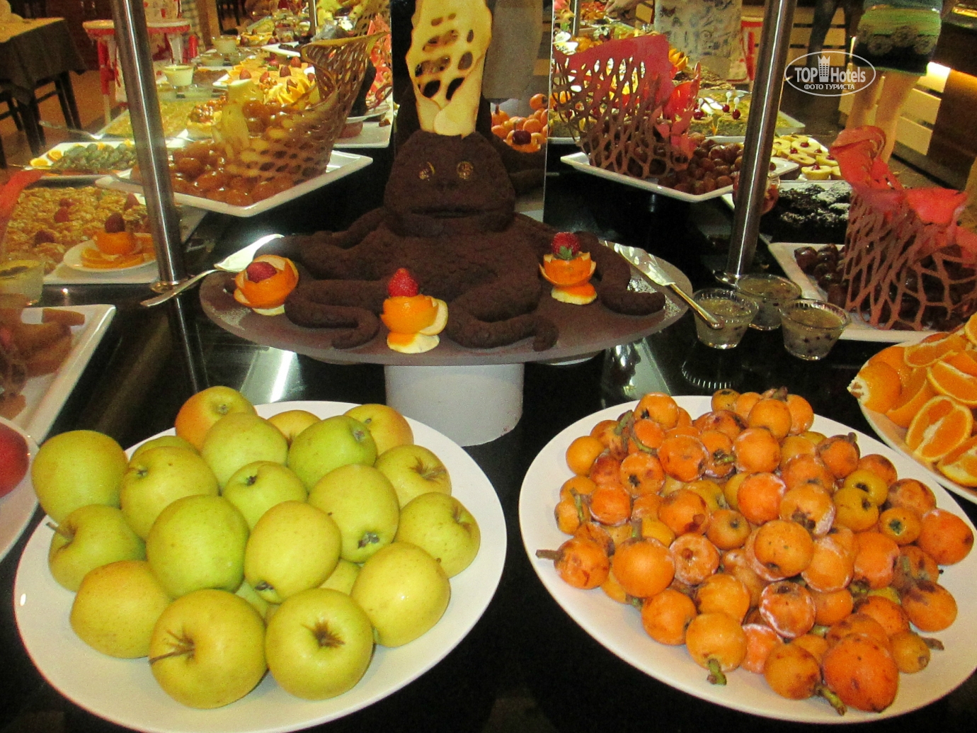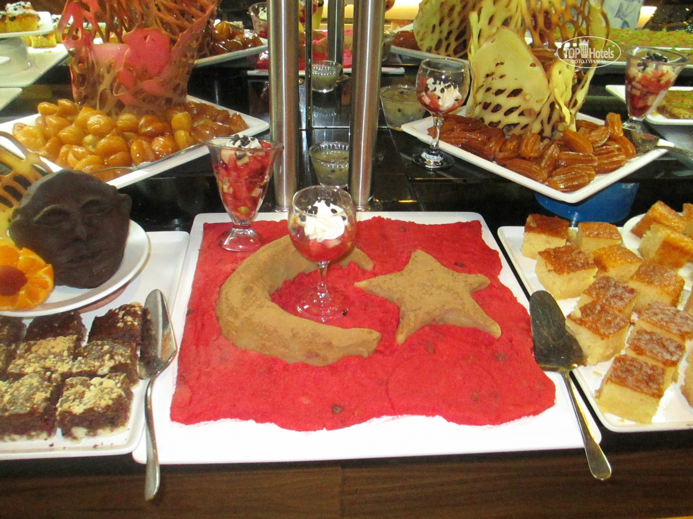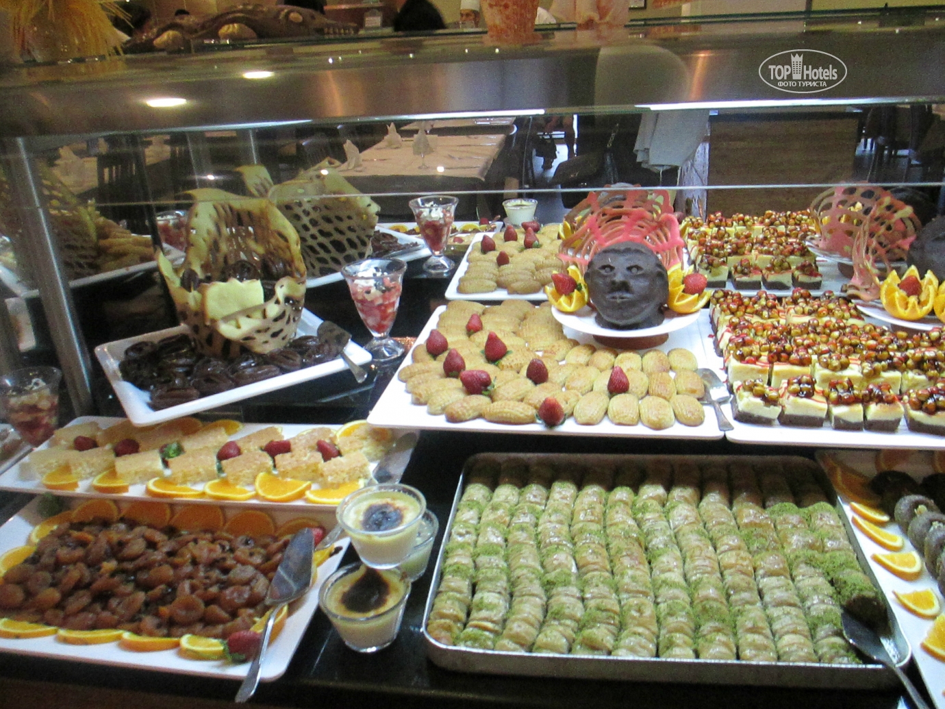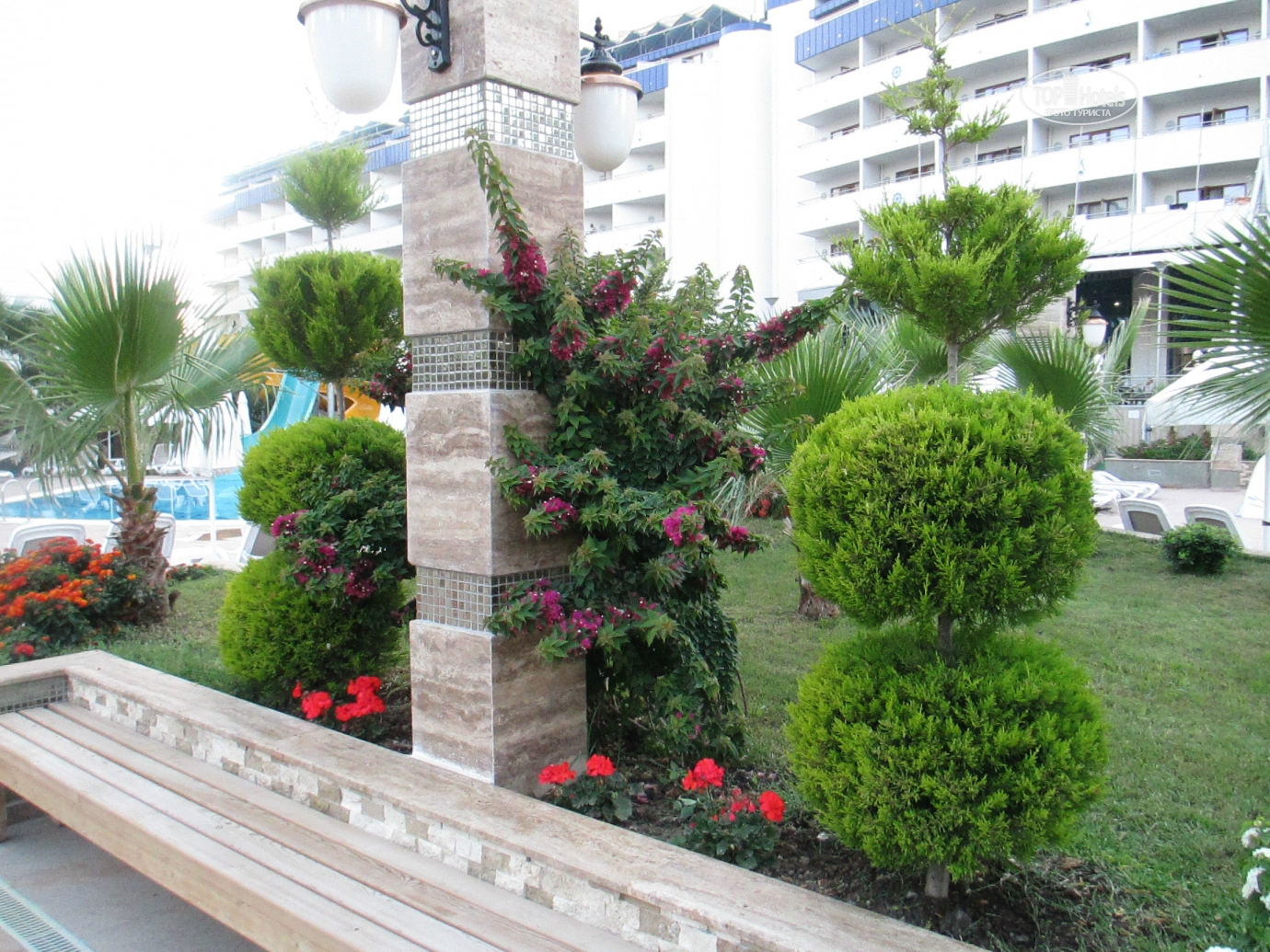 Добрый день! Отдыхали в отеле в мае с мужем и дочерью . Сказать, что нам понравилось, это ничего не сказать! Отель просто замечательный! Все новенькое ,чистое, безумно красивое. Номера просторные , с удобными кроватями . Вокруг зеркал подсветка, ящики прикроватных тумбочек с доводчиками. К уборке никаких нареканий: полы мыли каждый ,полотенца меняли ,постельное белье тоже. Каждый день приносили 1,5 литра чистой питьевой воды в бутылке. По приезду мини бар был заполнен колой, фантой , спрайтем и минеральной водой. Дальнейшее заполнение платное. Мы приехали в 12.00,сразу же надели браслеты и предложили пройти на обед, заселение обещали не раньше 14.00,нас это нисколько не расстроило, т.к. это международные правила размещения. На ресепшене никто по-русски не говорит, даже по-английски с трудом, в основном на турецком и немецком. Питание в отеле это отдельная тема, выше всяких похвал. Каждый день были вкуснейшие блюда: говядина, баранина, телятина , конечно курица и индейка, разные виды рыбы, иногда на гриле .Много овощей и закусок .А сладкий стол просто поражал своим многообразием!!! Из фруктов были яблоки , апельсины, грейпфруты, клубники , к сожалению не было, но мы купили в палатке прямо около отеля за 3 $ за килограмм(очень ароматная и сладкая).Официанты в отеле большие умнички. Все просьбы выполняли быстро, посуду грязную убирали оперативно, осталось только на руках нас носить!!!Анимация в отеле не навязчивая ,никто на ухо не орет, днем водное поло, аквааэробика , пляжный волейбол, дартс. До моря идти три минуты по дорожке между отелями. На пляже чистенько, ни одного окурка .Заход в море с пирса ,есть и заход с пляжа по песочку ,но он маленький и рядом речка течет. С погодой нам повезло ,все дни было жарко и солнечно, в море купались каждый день, хотя иногда бывали и волны, а нам очень нравилось!!!Отель скорее семейный ,молодежи может быть скучновато .Компактная зеленая территория, есть две детские площадки ,мини клуб ,кушать можно круглые сутки. Очень милый и уютный отель, который я буду рекомендовать всем своим знакомым ! Огромное спасибо всему персоналу отеля за прекрасный майский отдых в этом замечательном отеле!!!!!!!!!!