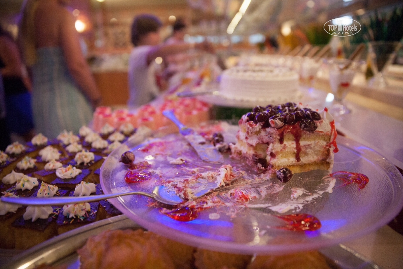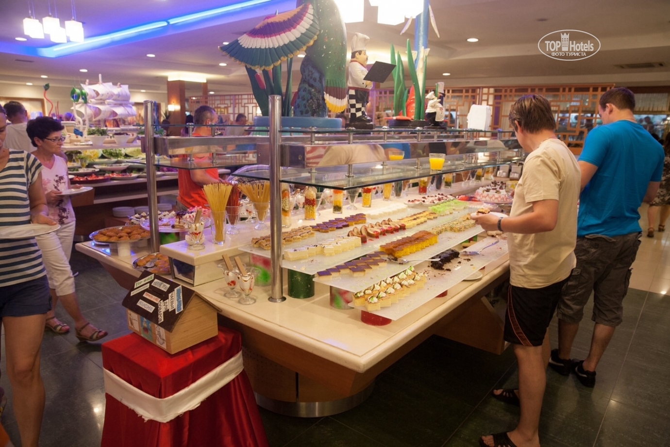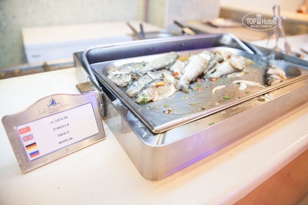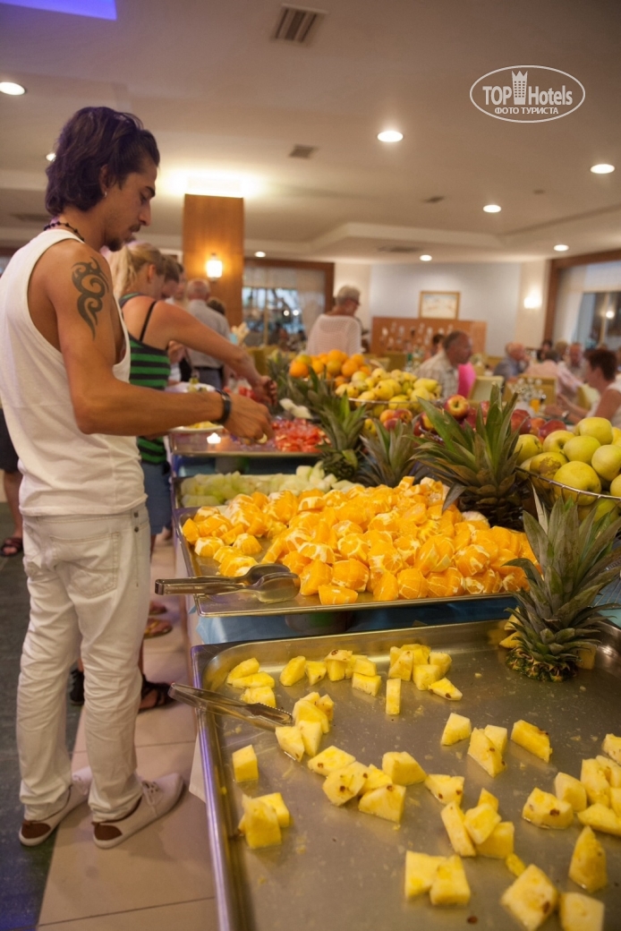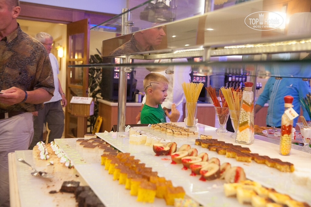 Итак, сиде бриз отель. Почему именно сюда надо ехать, а почему нет, чем тут кормят и как развлекают, мягко ли спать, вкусно ли пить - об этом и будет моё повествование, и будучи очевидцем жизни этого отеля на протяжении одиннадцати дней, я обещаю тебе правдивость, о читатель! Идея отправиться именно сюда была рождена наличием ребёнка семи лет от роду, которого уже год как необходимо было выгулять на турецких вольных хлебах и хорошенько прополоскать в водах средиземного моря. Подкупило меня количество положительных отзывов на топхотелс, хотя даже нет, не так - при наличии шестидесяти с лишним положительных отзывов, отрицательные отзывы отсутствовали вовсе. Поэтому, заплатив денежку турагенту, стали ждать конец июня. В назначеный ночь мы благополучно прибыли в город-герой Анталью, откуда нас домчали за каких-то полтора часа. Прибыли ночью. В три часа. Тут надо сделать реверанс Пегасу, который любезно выдал нам дополнительный ваучер на раннее заселение, за что им большое спасибо. Усталые, мы были проведены в наш номер 5208. Убранство номера не блистало пошлой роскошью, однако всё необходимое для жизни и отдыха там имелось. Мебель новая, на полу ламинат, кровати - двуспальная и двухярусная. Телик плоский. Задумчиво поколупав пальцем юэсби разъём на телике, я вспомнил, что не стал брать жосткий диск с кучей новых фильмов и мультиков. Но и ты не бери его мой читатель, а то вдруг тебе попадётся номер со старым теливизором (есть и такие - сам видел), и ты будешь проклинать меня цветистыми восточными ругательствами. В ванной в общем, тоже всё обычно - ванная, шампуни/гели д.душа, шапочки для него же. Фен. В прихожей платяной шкаф и сейф. Сейф за деньги. Три бакса в сутки. В нумерах не воруют, поэтому если есть чемодан с кодовым замком, можете сэкономить тридцать баксов. На балконе настенная сушилка на три предмета одежды, маленький столик с пепельницей и два кукольных стульчика. Сонно погудев феном (проверка!), я скомандовал отбой. Было четыре часа утра, мой дорогой читатель. Наутро, почистив пёрышки и переодевшись в отдыхательную униформу, отправились на завтрак. Вообще, концепция питания в отеле из разряда "голодным не останешься", но всё по порядку. Итак - завтрак. Закоренелым турчанам этот параграф можно не читать, ничего особенного там нет. Имеются: сосиски - съедобные, повара жарят оладьи/яишню/омлет с начинками. Сыры едабельные, колбасы непонятные, четыре-пять видов сдобы, мюсли, помидоры/овощи, тосты, десерты, фрукты - персики(съедобные три из пяти), абрикосы (совершенно несъедобные), подобные абрикосам сливы, дыни 50/50, вкусные: арбузы, груши, два вида яблок. Ну там кофе/чай/молоко и всякие колы/фанты. Скромненько, но с другой стороны вроде всё для еды есть. Наш семилетний крендель питался омлетом с оливками и сыром, четырьмя сосисками, бутербродом гриль (хлеб/сыр/колбаса/сыр/хлеб), запивая это чем бог послал. Далее путь вновьприбывших на курорт лежит куда? Правильно, к морю. К морю можно пройти двумя путями: первый - из отеля выйти на улицу вблизи главного входа, повернуть налево, дойти до упора, повернуть направо, в переулок, после его окончания перейти дорогу и налево. Уперевшись в променад, хиляйте по нему влево до флага с логотипом отеля. Там и будет наш пляж. Второй способ - это повернуть не в переулок, а наоборот, налево до виднеющихся вдали эвкалиптов. И та