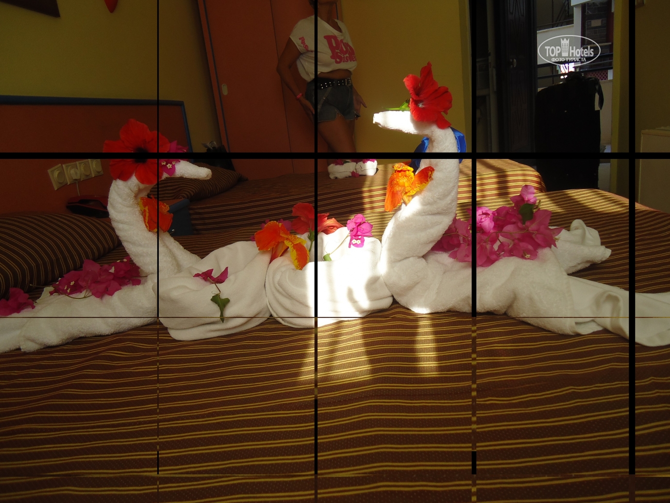 Здравствуйте!Сразу хочу сказать что мой отзыв будет необычный и очень большой,. Это отзыв-благодарность-рассказ.Я хочу рассказать о своем отдыхе в этом отеле в виде рассказа в котором Вы прочтете и поймете многое об этом отеле.Итак я начинаю... В Турции я не первый раз была в разных отелях и в тройка и в четверках.Скажу одно разницы между 3-4 практически нет,или только в большой територии и первой линииИ в этот отель я ехала уже во второй раз,т.к. 4года назад мне в нём понравилось .Так вот!Прилетели мы в Турцию 11.09.14 в аэропорт Анталии.Сели в трансфер который нас должен был довезти до отеля.До отеля с аэропорта ехать примерно 2-2,5часа,поэтому запаситесь терпением кто не любит долгие поездки.В отель мы приехали примерно в в начале пятого часа по турецкому времени.На ресепшене был парень которого зовут Доан,как оказалось он так же являлся аниматором в отеле.Мы улыбнулись ему, поздоровались на турецком и попросили номер с видом на бассейн.Ни каких денег мы дополнительно за номер не отдавали.Нам дали ключ от номера 2405 на 2-им этаже и мы с подругой "поскакали"со своими чемоданами заселяться у номера))). Номер был чистый, небольшой, но уютный.Душ и унитаз и фен работали исправно.Нуу,единственный нюанс был -это когда мы мылись в душе, то вся вода плескалась на пол.Да и это не проблема,мы её вытирали после принятия водных процедур.Постельное белье было белоснежными без единого пятнышка или дырочки,все полотенца чистые, белые и тоже без дырок.Кровать была застелена покрывалом и украшена лебедями из полотенец и цветами.Было очень приятно и красиво.Фото прилагаю.В номер каждый день приходили две женщины убираться,но мы их пускали через раз,два,потому что у нас нечего было убирать.Мне вообще не понятно что же можно в номере убирать каждый день и зачем через День два менять постельное и полотенца.??Чем можно всё это дело запачкать то?На пляже есть душ чтобы смыть песок с ножек и обуви,в отеле есть душ чтобы помыться.Я не поиму отзывы людей которые пишут что им не меняют полотенца и постельное через 1,2,3 дня!Людиии!Вы что не моетесь что ли?Чем пачкаете то?Ну да ладно!Поехали дальше... Разложив в номере вещи по мебели имеющейся в номере, а это -две тумбочки,и шкаф с вешалками,мы с подругой отправились на пляж поздоровкаться с морем :-).Море находится в 5 минутах ходьбы от отеля либо по подземному переходу или по мостику над дорогой.Кто не выносит вида скопления гор мусора советую лучше ходить по мостику.Так как в подземном переходе этого мусора полно.Но это опять таки говорит о человеческом факторе!Туристы сами загрязняют окружающую территорию,вместо того чтоб выкинуть мусор в отведенное для этого место!!!На пляже шезлонги,зонтики бесплатно.На пляже в баре была вода,чай и сок, типа юпи.Душ и туалет.Полотенца из отеля на пляж брать нельзя, Их можно купить в магазине при отеле.Там же можно и даже нужно,потому что в дьюти фри цены очень кусаются,купить восточные сладости,Пахлава-пальчики оближешь!)Так же в этом магазине можно купить различные сувениры,постельное бельё,сигареты и очень вкусное гранатовое и ежевичное вино и многое другое. Так же рядом с отелем по пути на пляж есть магазины в которых продаётся разная одежда,сувениры а так же еда напитки и фрукты.Очень советую попробовать турецкий айран-очень вкусный!Тот айран,который продают у нас в Кемерово -просто газир