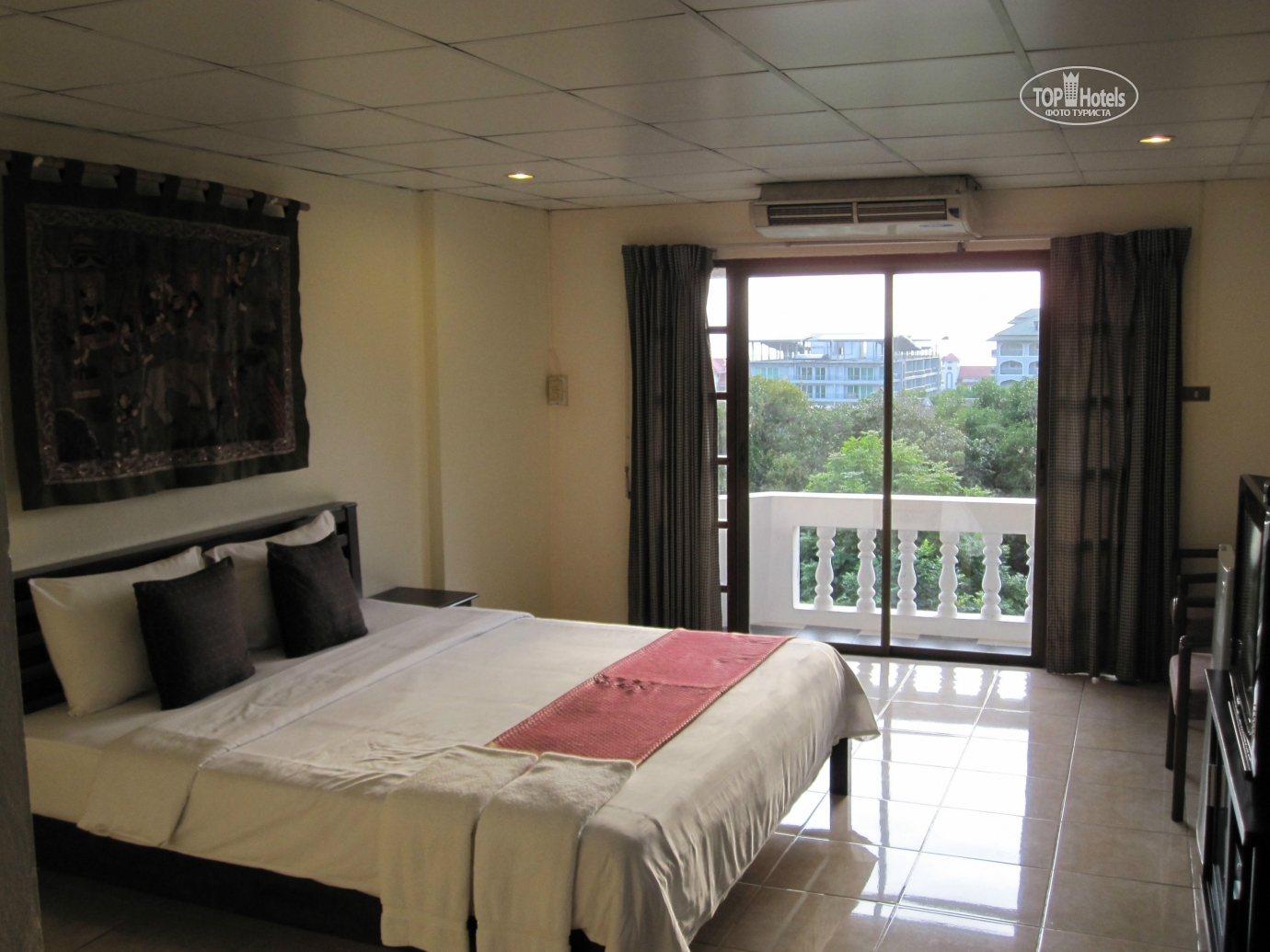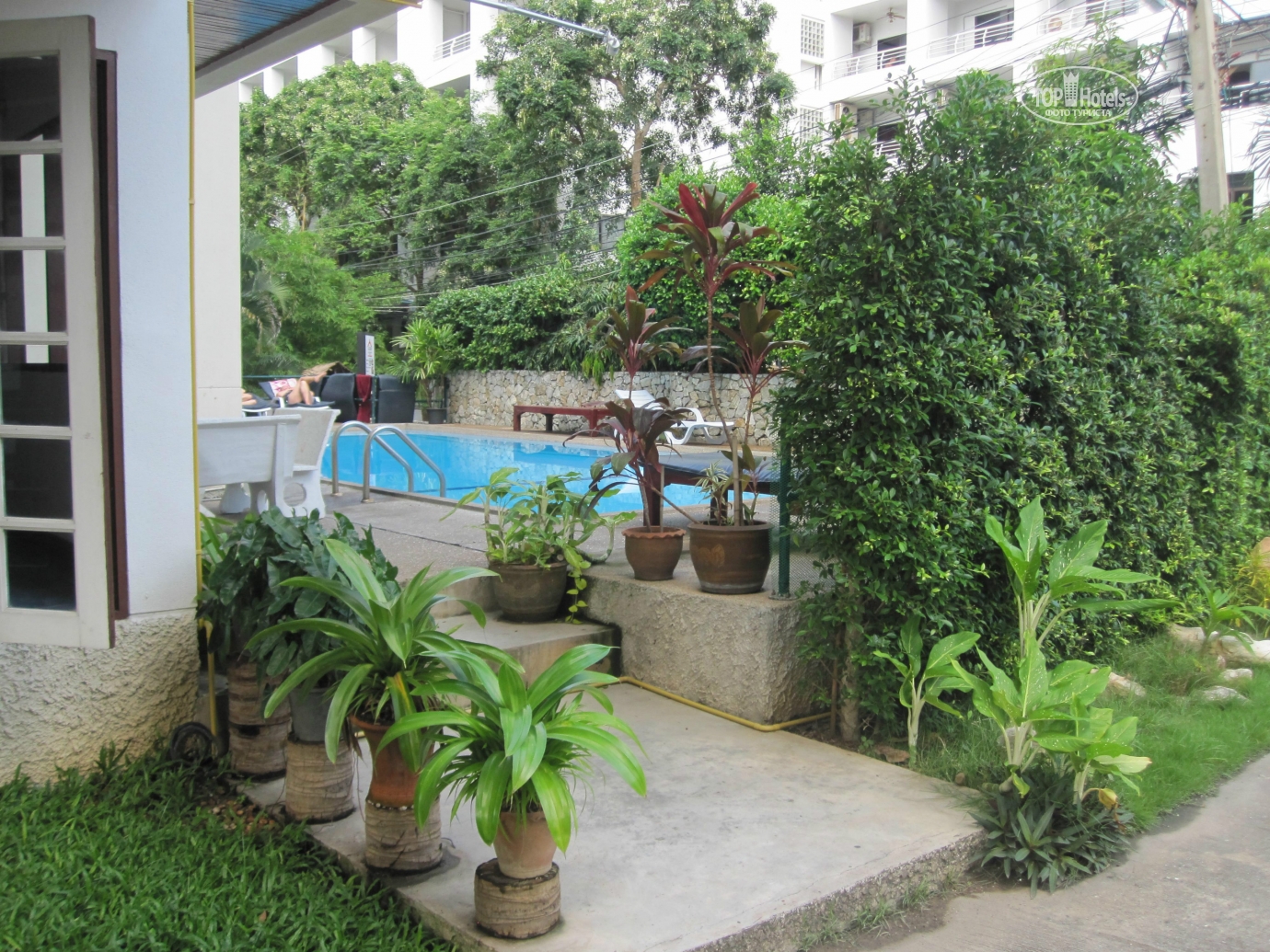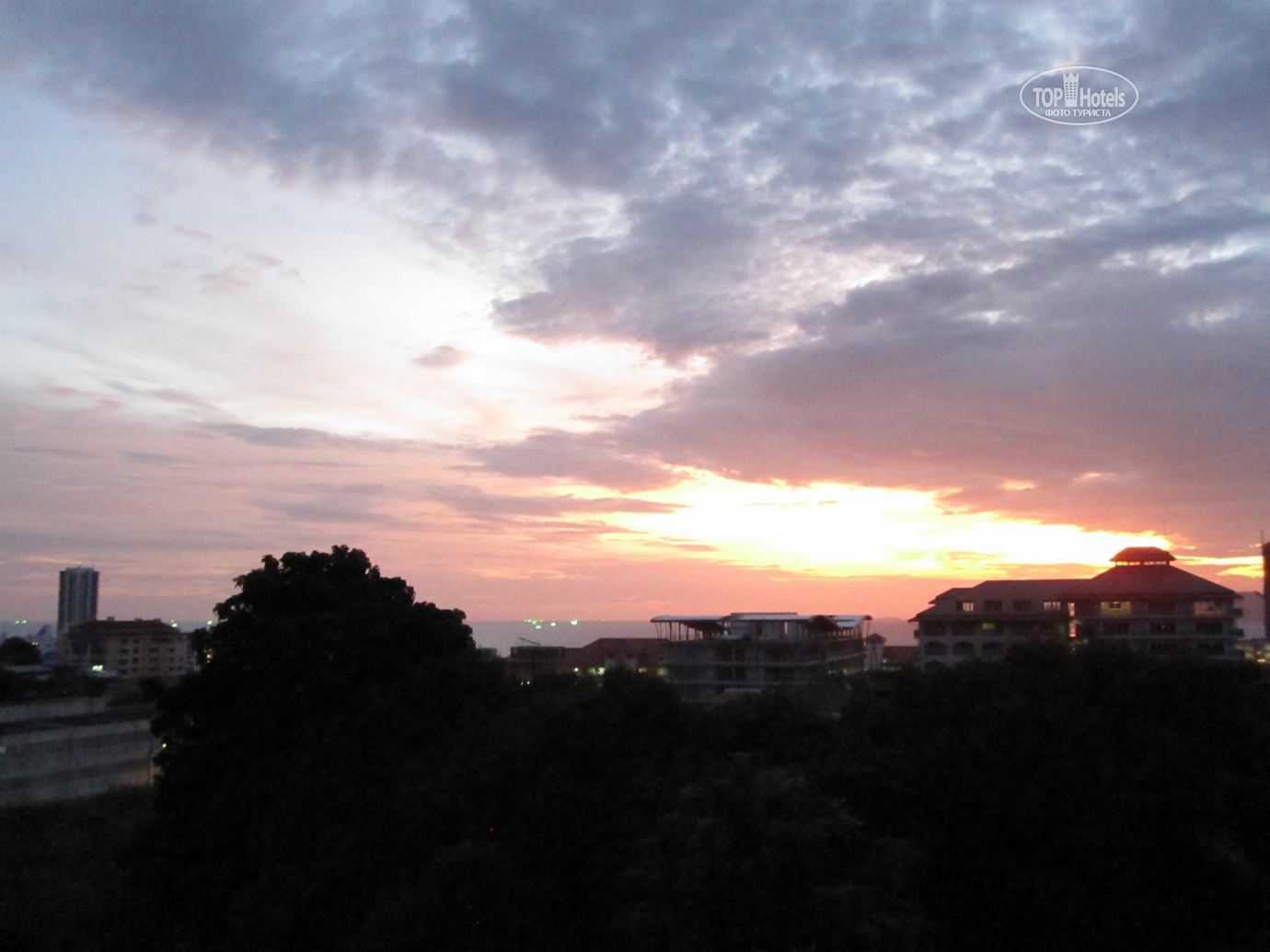 Сразу отмечу, что путевку в отель мы приобрели по стоимости 43 000 руб. на двоих. Прочитав отзывы подготовились к худшему, но в итоге проживание в отеле оставило у нас только положительные впечатления. Отель расположен в тихом месте (шум машин и крикливые туристы отсутствуют вообще). Это связано с тем, что дорога, на которой расположен отель, является тупиковой и по ней совсем мало движения. Волкин Стрит расположен в 15-20 минутах ходьбы, Холм Будды – 5 мин. Нам нравятся пешие прогулки, поэтому гуляли мы много и с удовольствием. В город можно без проблем добраться на тук-туке, а вот обратно сложнее, т.к. тук-тук может свернуть на дорогу к Джомтьену. Сам отель 4х этажный и в сумме набирает не больше 50 номеров. На ресепшне имеется компьютер с доступом в Интернет (20 бат - 1 час), бильярд (20 бат – 1 игра), мини-кухня (кухонные приборы, кипяток). Проживают в отеле преимущественно русские и немного индусов. Мы жили в номере на 4 этаже с видом на море. Перед окном был небольшой садик с красивой пальмой посередине. Номер включает в себя: кондиционер, телевизор с 3 русскими каналами, мини-холодильник, телефон, DVD-плеер. Из мебели - большой шкаф, зеркало и призеркальный столик, 2 стульчика, 2 кресла, маленький столик. Вся мебель довольно приличная. Насекомые в номере отсутствовали. Каждый день нам приносили чистые стеклянные стаканы и кружки, исправно докладывали пакетики шампуня и мыло. Все 2 недели каждый день у нас убирались и украшали кровать живыми цветами при этом, оставляя сюрпризы из полотенец в виде слоника, краба, лебедей и цветов. Чаевые оставляли 10-15 бат. Завтраки вкусные, но однообразные (см. фото). Но надоесть за 2 недели он нам не успел. В бассейне купались несколько раз. Каждый раз исправно выдавали полотенца для бассейна. Кстати, его действительно по утрам «пылесосят». Обязательно зайдите в кафе, расположенное прямо напротив отеля. Скромное кафе с вкусными и недорогими блюдами. Мы часто заказывали плоскую лапшу со свининой и рис со свининой (по 50 бат порция). Таких же цен за такие блюда мы в Паттайе не нашли. Весь отдых прошел без происшествий и конфликтов с персоналом и в целом отелю можно ставить хорошие оценки с учетом стоимости нашей поездки.