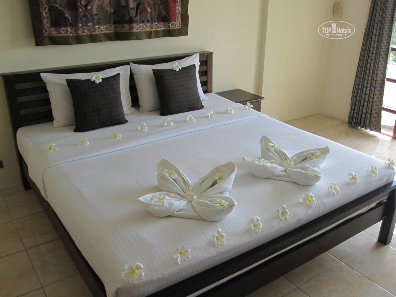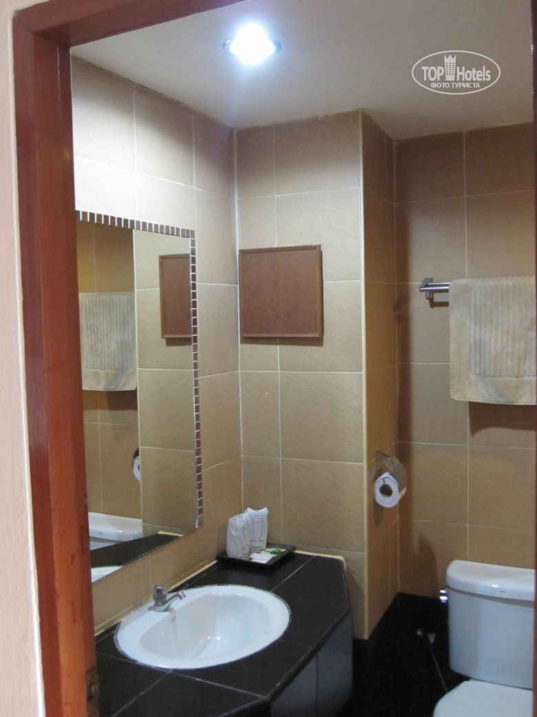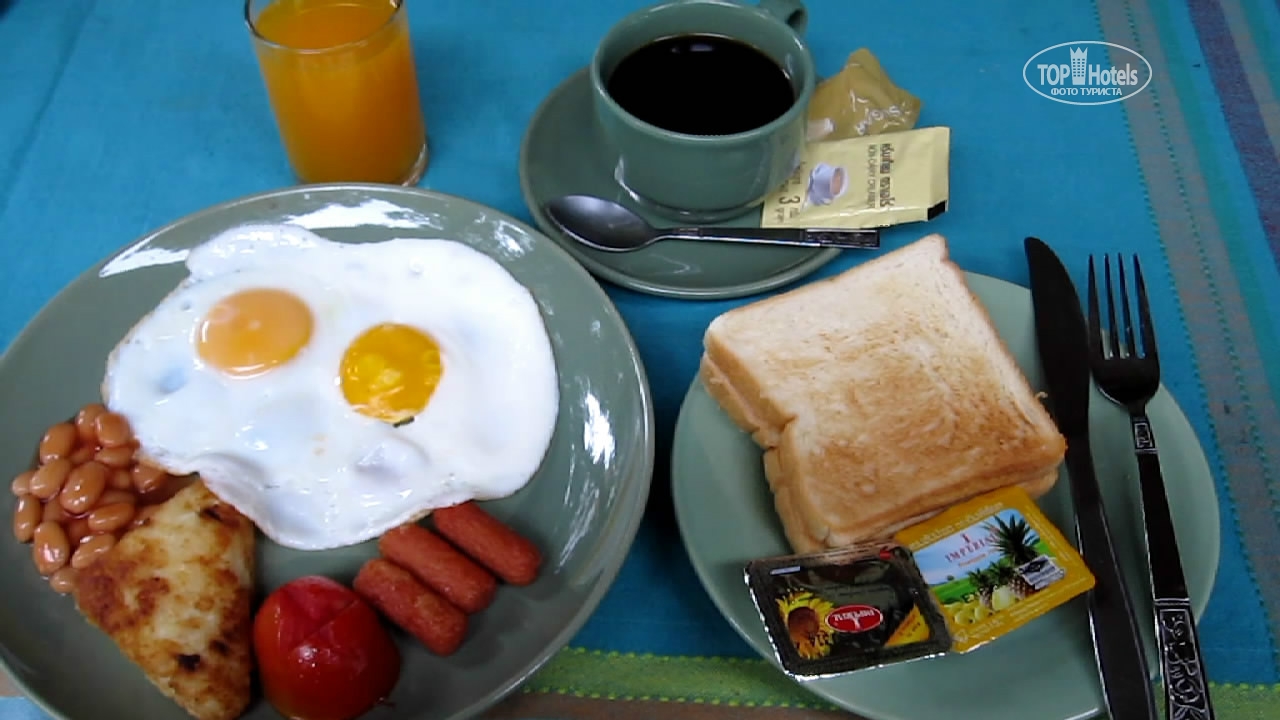 Сразу отмечу, что путевку в отель мы приобрели по стоимости 43 000 руб. на двоих. Прочитав отзывы подготовились к худшему, но в итоге проживание в отеле оставило у нас только положительные впечатления. Отель расположен в тихом месте (шум машин и крикливые туристы отсутствуют вообще). Это связано с тем, что дорога, на которой расположен отель, является тупиковой и по ней совсем мало движения. Волкин Стрит расположен в 15-20 минутах ходьбы, Холм Будды – 5 мин. Нам нравятся пешие прогулки, поэтому гуляли мы много и с удовольствием. В город можно без проблем добраться на тук-туке, а вот обратно сложнее, т.к. тук-тук может свернуть на дорогу к Джомтьену. Сам отель 4х этажный и в сумме набирает не больше 50 номеров. На ресепшне имеется компьютер с доступом в Интернет (20 бат - 1 час), бильярд (20 бат – 1 игра), мини-кухня (кухонные приборы, кипяток). Проживают в отеле преимущественно русские и немного индусов. Мы жили в номере на 4 этаже с видом на море. Перед окном был небольшой садик с красивой пальмой посередине. Номер включает в себя: кондиционер, телевизор с 3 русскими каналами, мини-холодильник, телефон, DVD-плеер. Из мебели - большой шкаф, зеркало и призеркальный столик, 2 стульчика, 2 кресла, маленький столик. Вся мебель довольно приличная. Насекомые в номере отсутствовали. Каждый день нам приносили чистые стеклянные стаканы и кружки, исправно докладывали пакетики шампуня и мыло. Все 2 недели каждый день у нас убирались и украшали кровать живыми цветами при этом, оставляя сюрпризы из полотенец в виде слоника, краба, лебедей и цветов. Чаевые оставляли 10-15 бат. Завтраки вкусные, но однообразные (см. фото). Но надоесть за 2 недели он нам не успел. В бассейне купались несколько раз. Каждый раз исправно выдавали полотенца для бассейна. Кстати, его действительно по утрам «пылесосят». Обязательно зайдите в кафе, расположенное прямо напротив отеля. Скромное кафе с вкусными и недорогими блюдами. Мы часто заказывали плоскую лапшу со свининой и рис со свининой (по 50 бат порция). Таких же цен за такие блюда мы в Паттайе не нашли. Весь отдых прошел без происшествий и конфликтов с персоналом и в целом отелю можно ставить хорошие оценки с учетом стоимости нашей поездки.