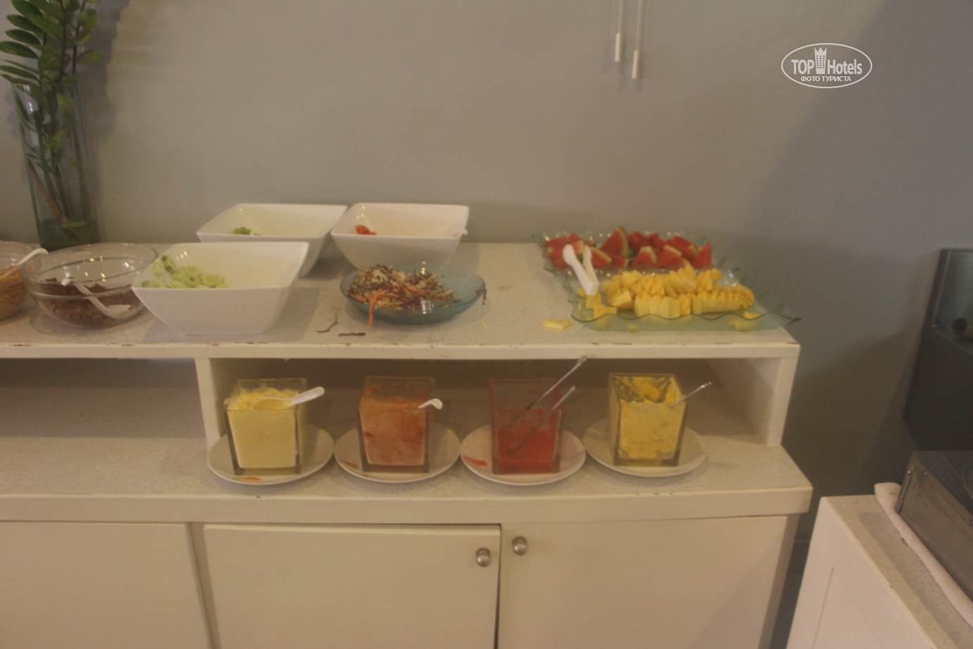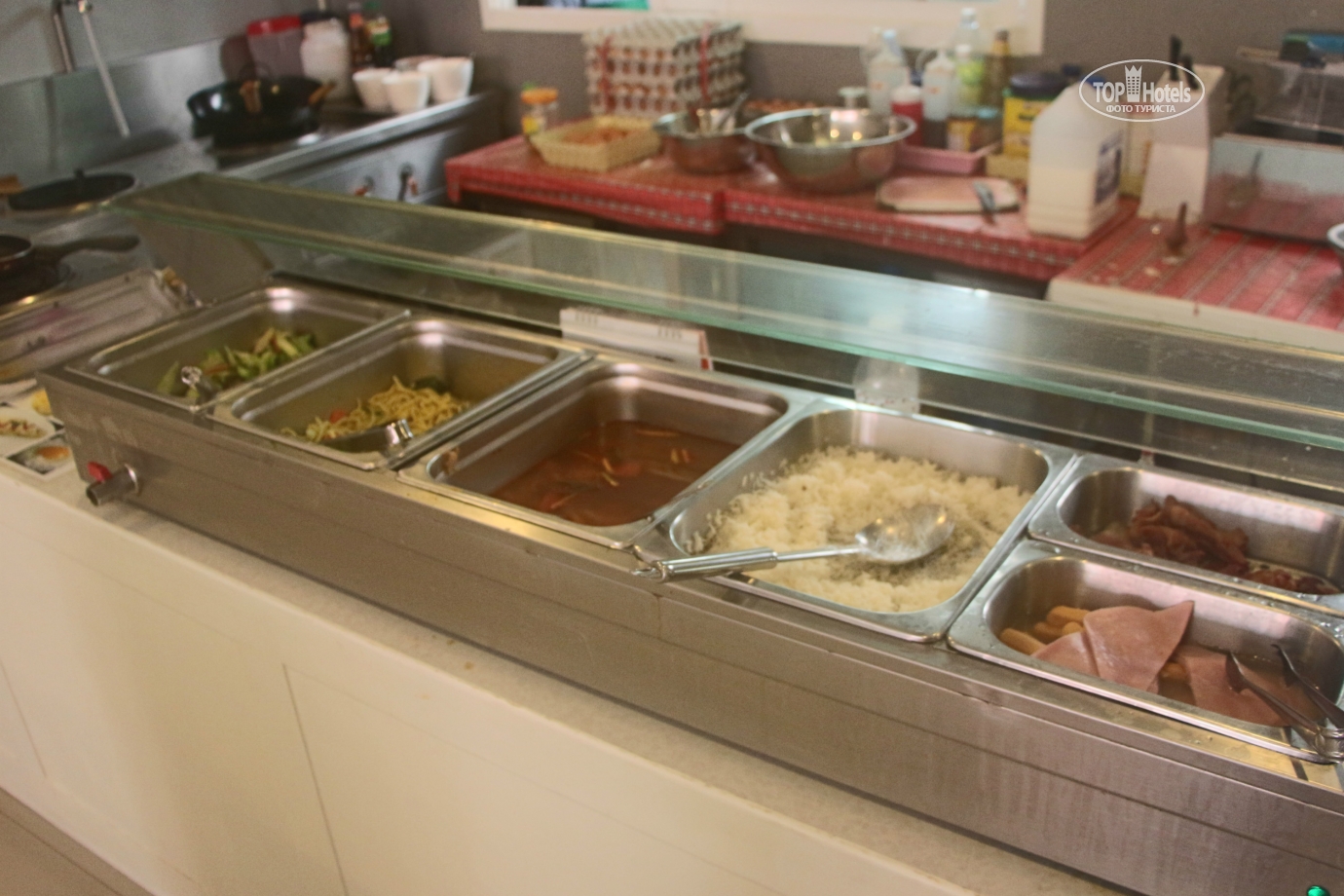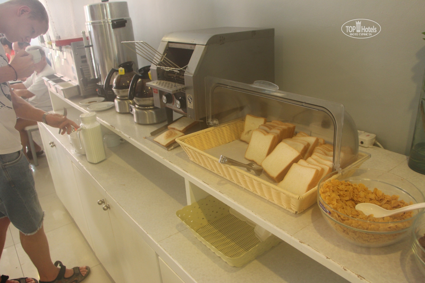 Всем доброго времени суток. Отдыхали в этом отеле вдвоем с товарищем вначале марта. По-моему март лучшее время для отдыха на Пхукете. В общем по-порядку. Летали с оператором Натали-Турс. Трансаэро. Задержек никаких и нигде, все отлично. Гиды все вежливые русскоязычные, в общем было приятно. Заселение: Твердая 5. Быстро, вежливо, с улыбкой на лице! Депозит оставили 100$. Можно и в местной валюте, но куда ее потом девать? Персонал: ребята и девушки все молодые, веселые, вежливые. Номер: номер был 2216 второй этаж, дальнее крыло. Номер для двоих достаточен полностью. Шкаф, тумбочка, 2 пуфика, стол с телевизором, минихолодильник, сейф в шкафу, 2 кровати, межкроватная тумбочка, душ, туалет, раковина (совмещенный и без шторки). Два стакана, две чашки, ложки... Каждый день приносили по бутылке воды 0.6 л на человека. Убирались каждый день очень чисто. Белье и полотенца меняли каждый день. О балконе в этом отеле написано уже много и это правда. Кто любит посидеть на балкончике - не получится, максимум постоять покурить. Питание: завтрак с 7 до 10. Ну еда каждый день одна и та же, но можно варьировать - сегодня одно, завтра другое. Мы где-то к третьему дню вписались в распорядок дня и завтракали почти всегда в отеле. Еда свежая. Фрукты: арбузы, бананы, ананасы. Сосиски, бекон. Рис, лапша. Капуста нарубленная, помидоры, огурцы. Кукурузные хлопья. Джемы, тосты, молоко, кофе, чай и типа соки. И естественно омлет. на картинке показаны 3-х видов, но мы видели только двух, хотя одно и то же в принципе, но омлеты мы брали всегда. Вообще есть особо и не хотелось. К примеру я брал: бекон (ломтиков 5-6), омлет, пару долек огурца, два тоста, фруктов по несколько долек, изредка рис, кофе или чай под настроение. Вот такого завтрака мне хватало на пол дня точно. Бассейн: на крыше (6 этаж), небольшой но достаточный для охладиться, пару раз спасал. Думаю он подойдет, когда идти куда-то лень в жару. Насчет места расположения: нас все устраивало. Даже нам было выгодно данное расположение, т.к. ездили везде в основном на скутерах. Снять скутер можно в любом отеле и не только под залог паспорта. Где-то (чаще на улице) для аренды спрашивают права. Стоимость скутера 250 мл в PJ - 300 бат/сутки (но мопеды все новые). В соседних по 250 бат, но нужно уже повыбирать. Дорога, которая ведет к ДжангЦейлону, действительно на тот момент ремонтировалась и возможно некоторые пешеходы и испытывали некий дискомфорт, но я ничего подобного не ощутил, наоборот даже, она добавляла местного колорита. На местном пляже за весь отдых ни разу не искупались, да это и не нужно было. Рядом, если ехать на юг, Карон (тук-тук 300-400 бат, можно кооперироваться вшестером и с каждого примерно 50 бат), чуть дальше Ката. Ката Ной (маленький пляж) - сказка. Если ехать на север - Лиам Синг (красивый, небольшой, но ступеньки - это надо попробовать), Сюрин, Камала. Так вот подытожу. Отель для тех, кому надо переночевать или передневать))) Мы лично в отель именно за этим и приходили, принять душ после моря, переодеться и поспать - все. Для тех, кто любит отельный сервис и отдых на территории отеля с комфортом, вряд ли Вам сюда. Все чисто, аккуратно, но скромно и без каких-то изысков. Если отдыхать как мы - скутеры, ночные прогулки, иногда и по двое суток - этот отель, думаю, самое то. Но на Пхукете запирать себя в отель - не мое! ИМХО Поэтому те, кто привык у себя дома есть по 10 видов икры, к