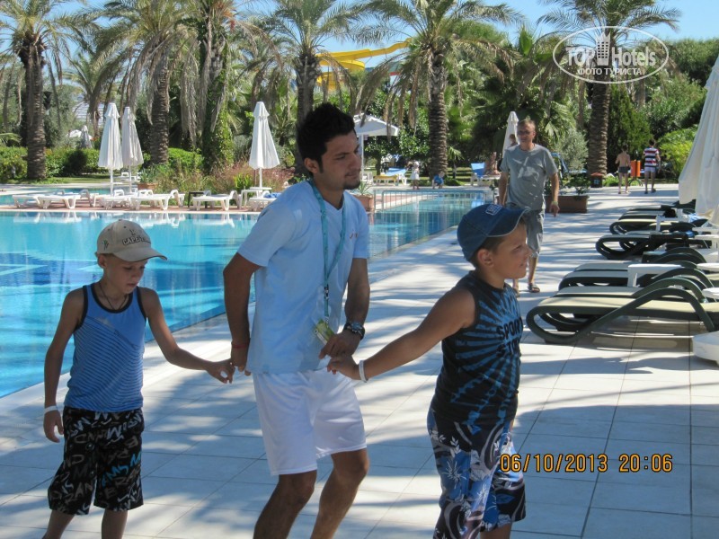 Доброго времени суток всем!!! Собирались компанией! Всего 9 человек разного возраста! Акцент делали на детей – им нужны горки! Искали долго – то горок мало, то маленькая территория, то дорого! И случайно нашли «Наширу»! Мы её не рассматривали, так как в прошлом году на её территории было всего две горки! Но вот оно чудо – в этом году построили новый аквапарк – очень много горок! И цена, и территория, и наличие такого аквапарка нас устроило! Купили путёвки и ждали вылета! Каждый год мы едем ОТДЫХАТЬ только с ПОЗИТИВНЫМ настроем и не обращать внимания на всякие мелочи! Номер у нас был 2549 - 2-х этажный с шикарным видом на горы и лес. Уборка хорошая, минибар пополнялся ежедневно! Территория действительно впечатляет! Всё в бассейнах и пальмах, финики, бананы, оливки, везде цветочки – красотище! За территорией ухаживают подметают и поливают, и сорняки вырывают! Пляж громадный – метров 400-450 длиной и шириной метров 50! Есть большой пирс! Основной ресторан – «SULTAN»! Большое помещение внутри и примерно ещё половина мест на улице! Вспомогательный ресторан – находится на территории снэк-бара! Можно перекусить, если обедать не хочется! Еды очень много и разнообразная! В общем, голодными не останетесь! Алкоголь качественный, хоть в основном и местный! Пиво вкусное, мартини 3-х видов, кампари, бэйлиз, шампанское, водка, ром, тэкила, джин, коньяк, виски, раки! А также коктейли: Нашира, кровавая Мэри, Малибу, Пина, Мохито и др. Всё круглосуточно! Очень вкусный томатный сок! Развлечения! Их очень много! Как аквапарк, с его многочисленными горками, так и дневная анимация, с её многообразием! Об команде анимации подробнее! Анимация – сердце развлечений! Команда просто отличная, сбалансированная! В её составе русские, украинки, турки, немки другие! Они всегда приветливы, smile, очень общительны и действительно хорошие люди! Начинаем перечислять: Надежда - шеф анимации! Её «ку-ку» каждый раз заряжает энергией! Очень симпатичная, обаятельная девушка, очень пластичная, знает много языков! Танюшка - детская анимация! Очень красивая, обаятельная! Очень любит детей! Скучает по родине! Ещё две немецкие девушки – детская анимация, очень обаятельные! Но самые лучшие аниматоры – это Мурат и Мами! Всегда приветливы, подходят, общаются, просто красавцы! Добродушные, терпят наших назойливых детей! Каждый день проводят дневные «весёлые старты», футбол, волейбол, боччу, дартс. Также аквааэробику и йогу! И не забываем про аквапарк и конечно же море! В общем день пролетает просто незаметно! После ужина посещали мини-диско, где наша детвора иногда танцевала! И смотрели вечернее шоу, где нас развлекали как местные аниматоры, так и приезжие артисты! В отеле есть хороший SPA- центр! Крытый бассейн с тёплой водой, тренажёрный зал, сухая парная, влажная парная и тёплые камушки, на которых приятно лежать! И ещё у нас случился один не совсем приятный случай! Ребёнок вечером спускаясь по лестнице засмотрелся и упал! Утром сказал, что ходить не может! Мы узнали у представителя нашего оператора что делать! Ответ однозначный - активировать страховку! Позвонили по номеру, оставили информацию и в номер! Через 10!!!!! минут звонок – машина у ворот отеля! Отвезли в госпиталь, сделали рентген – перелома нет! Выписали мазь, сделали перевязку и отвезли обратно в отель! Активация страховки 30$! Так что если не дай бог с к