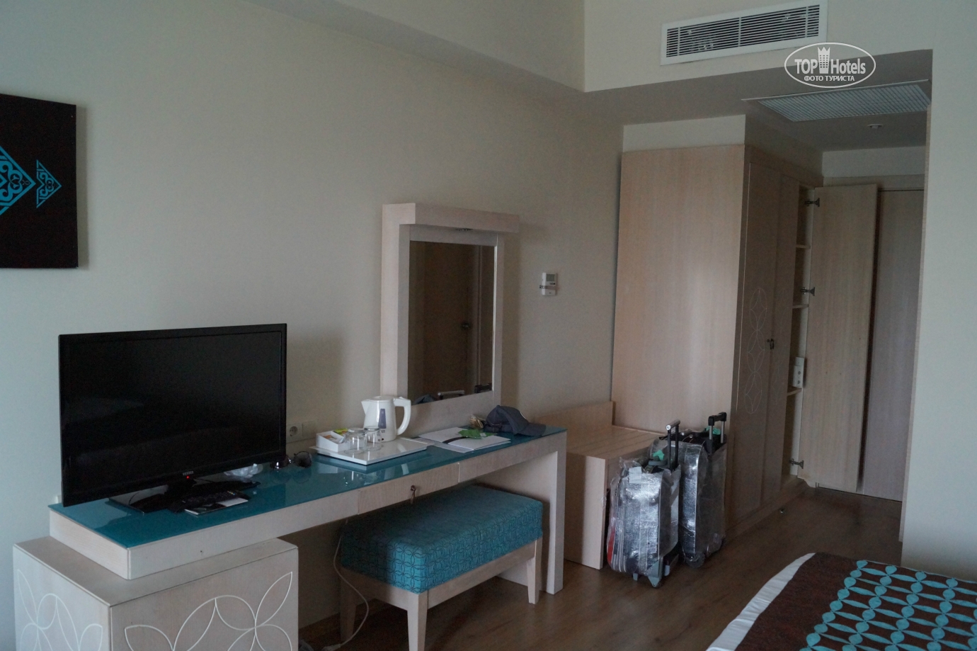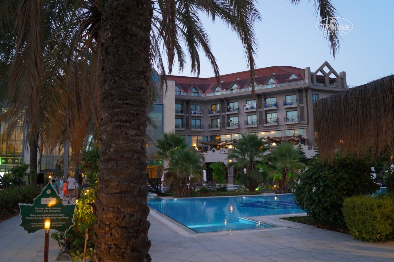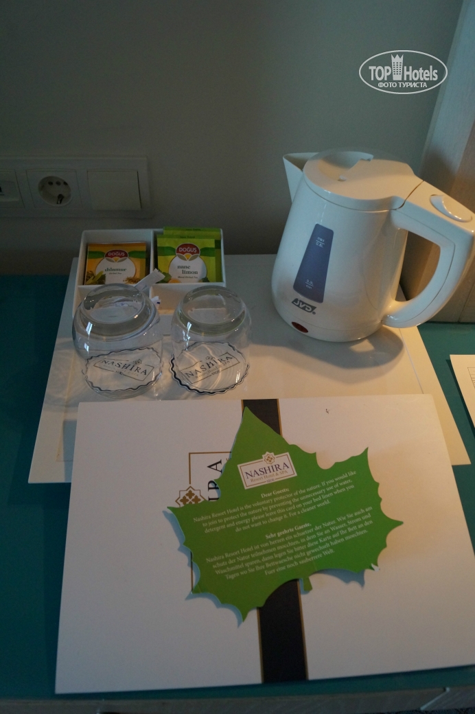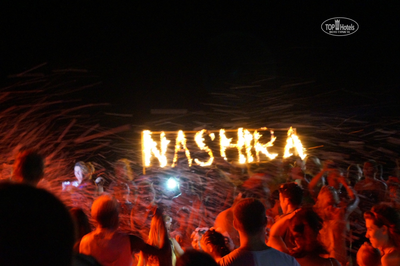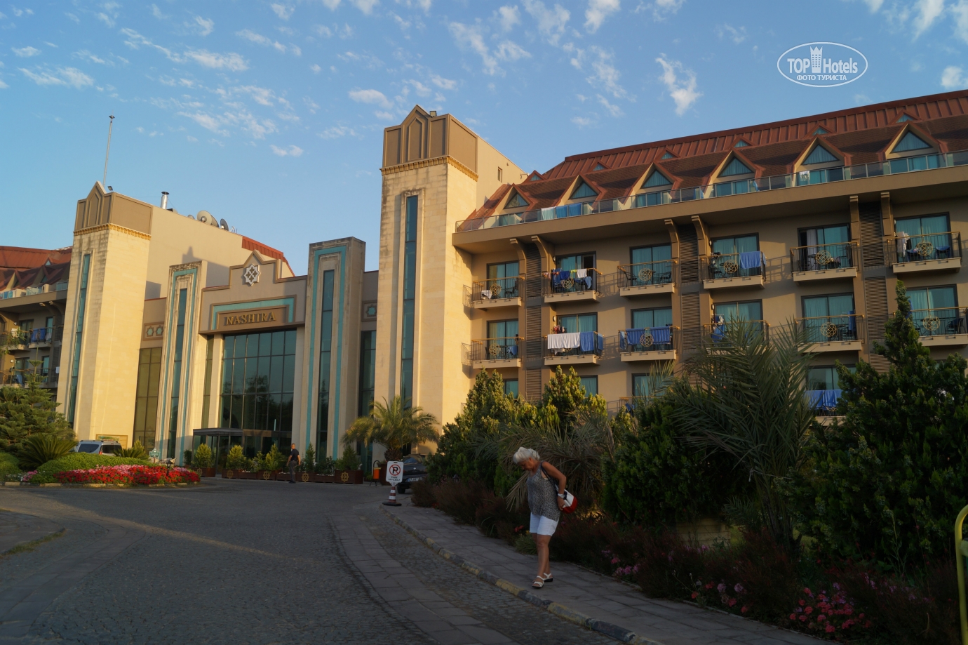 Добрый день всем кто планирует отдыхать в этом отеле либо еще не определился с выбором)))) Оставляю отзыв спустя несколько дней по приезду,чтобы эмоции улеглись и описание получилось бы более объективным. С 26.06.2014 по 02.07.2014. Дорога в отель. В аэропорту сразу нашли трансфер.только сели-сразу поехали.В списке "Нашира" была 2-ой.1-ый отель,который проезжали "поразил"большим количеством асфальта,выжженной травой и бассейном 2 на 2.и ТОЖЕ 5 звезд.за что?(к чему я на этом делаю акцент поймете позже).Езда заняла примерно 1 час 30 мин.Дорога шла через благоухающий лес и озеро.подъезжая, увидели, что отель утопает в зелени и цветах,поражает роскошью вестибюля.Все ,кто ехал в автобусе проснулись и ахнули,переспрашивая друг у друга что за отель.При чем, нигде на фасаде вы не увидите привычную "звездность" отеля.(Не забудьте водителю оставить чаевые при выходе в "Типбоксе"))) Прибытие. Прибыли около 10.Дали браслеты (по словам Татьяны,не дают преимуществ и прочего,нужны для определения языка ,на котором с вами говорить).Зеленый- Россия.Синий-Турция.Красный-бронь через интернет.Желтый- все страны,включая Украину.Белый-всем детям до 12.Оставили чемоданы у входа))))ценное- на ресешнене. Взяли полотенца в СПА, там же переоделись (есть туалет и раздевался со шкафчиками, со содержимое которых никто не несет ответственности))) и в аквапарк! Аквапарк. Всего 26 горок,включая детские и старые в другой части отеля.горки классные.Плюшек и лежаков хватает всем.Очень хлорированная вода.Рекомендую взять с собой капли альбуцид-моей дочери пригодились.В тех перерыв с 12:30 до 14:30 моют плитку,берут пробы воды.Глубина 140 см.В бассейне у горки "Унитаз" 170 см-будьте осторожны.На территорию запрещено проносить еду.Можно только напитки и мороженое.В 15:30 вспомнили о расселении.Пришли- номер готов. Расселение. Номер 1343.(1-это крыло,3-этаж,43 комната)Поразило,что каждый элемент и любая мелочь вокруг сделана в восточном стиле с вкраплением личной символики,имеющей свой смысл.она везде!Подробности описаны на стенде по дороге к морю. Персонал (мальчик) принес чемоданы в номер.Обрывками фраз на английском рассказал как пользоваться сейфом.Когда ушел,то обнаружили,что сейф закрыт.Позвали по телефону техника.Пришел сразу.ОТКРЫЛ сейф.Позже было не понятно,надо ли вообще его закрывать,если открыть его может кто-то из техников без вашего присутствия)))(Информационно).Русские каналы настроили уже без нашего присутствия тоже по звонку. Ванная или душевая-отдельная тема и главный недостаток номера,включая изношенность мебели.Не хочу внедрятся в подробности,но рекомендую администрации отеля подумать,как облагородить эту конструкцию более прилично,чтобы не портить общее впечатление роскоши отеля.Душ был съемным.Унитаз- биде для подмывания.Бумага,гели,кондиционеры,шампуни,шапочки,ватные палочки и диски,нитки,чайник,фен.Возьмите с собой утюг и порошок))Лифт не работает ночью-важно для тех, кто уезжает или приезжает в это время.)) Лучше брать номера с видом на сад.Там прохладнее.Минус-установка,которая гудит круглосуточно.Но не критично при закрытой двери.Берите прищепки,чтобы не искать свой купальник в саду.На первом этаже есть лежаки и гамаки,но учтите,что там нет забора, а только живая изгородь)))Кондиционер-климат контроль.сильно не охлаждает-не заболеете, но и в номере комфортно.Выключатся при откры