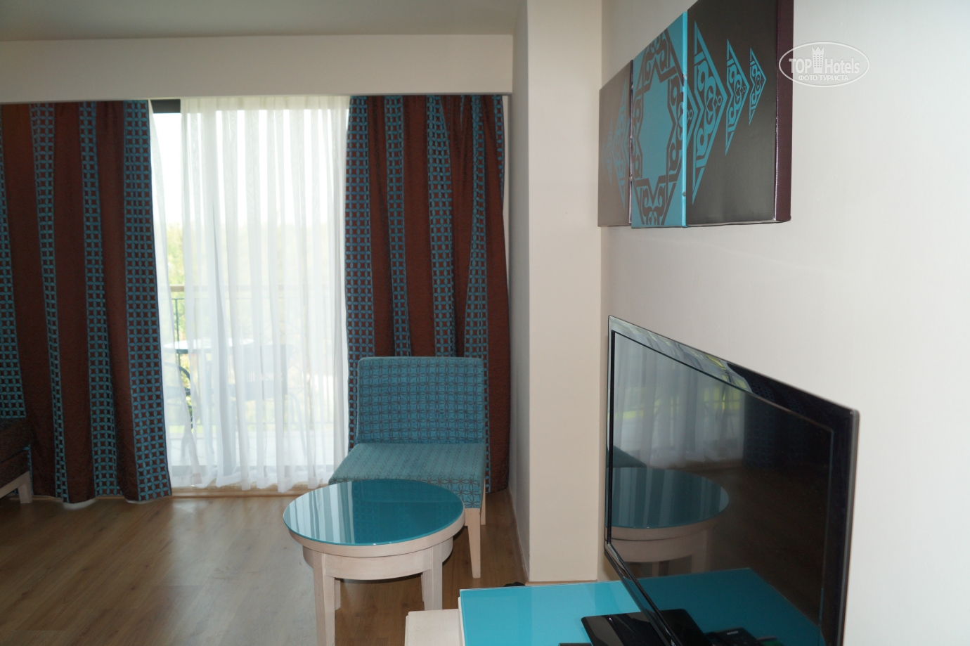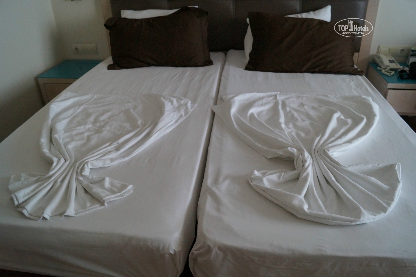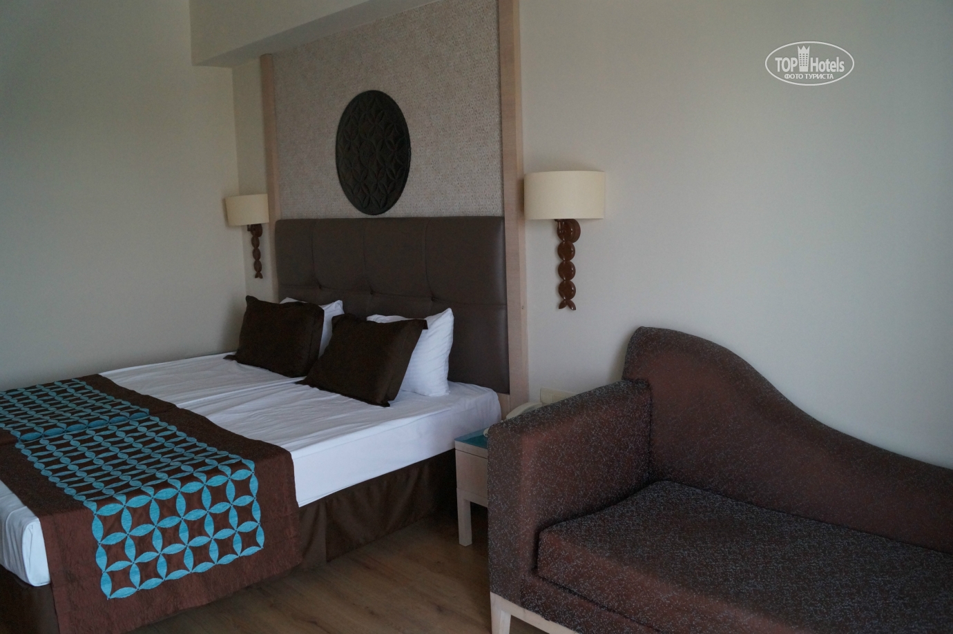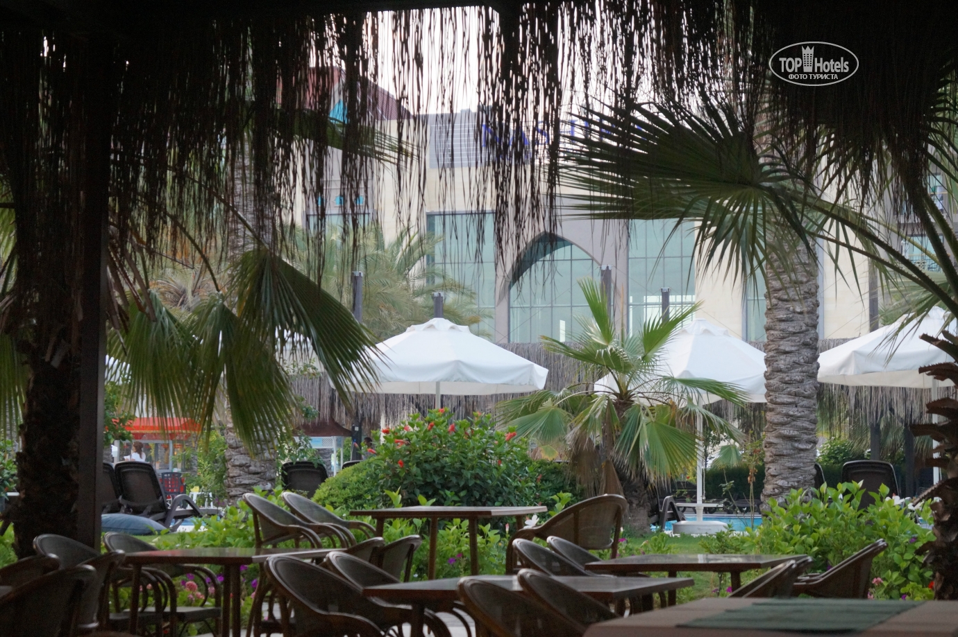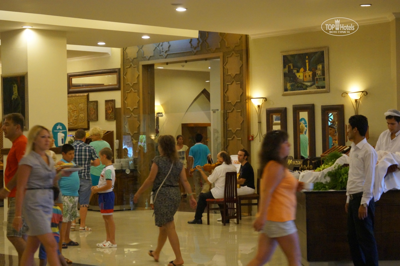 Добрый день всем кто планирует отдыхать в этом отеле либо еще не определился с выбором)))) Оставляю отзыв спустя несколько дней по приезду,чтобы эмоции улеглись и описание получилось бы более объективным. С 26.06.2014 по 02.07.2014. Дорога в отель. В аэропорту сразу нашли трансфер.только сели-сразу поехали.В списке "Нашира" была 2-ой.1-ый отель,который проезжали "поразил"большим количеством асфальта,выжженной травой и бассейном 2 на 2.и ТОЖЕ 5 звезд.за что?(к чему я на этом делаю акцент поймете позже).Езда заняла примерно 1 час 30 мин.Дорога шла через благоухающий лес и озеро.подъезжая, увидели, что отель утопает в зелени и цветах,поражает роскошью вестибюля.Все ,кто ехал в автобусе проснулись и ахнули,переспрашивая друг у друга что за отель.При чем, нигде на фасаде вы не увидите привычную "звездность" отеля.(Не забудьте водителю оставить чаевые при выходе в "Типбоксе"))) Прибытие. Прибыли около 10.Дали браслеты (по словам Татьяны,не дают преимуществ и прочего,нужны для определения языка ,на котором с вами говорить).Зеленый- Россия.Синий-Турция.Красный-бронь через интернет.Желтый- все страны,включая Украину.Белый-всем детям до 12.Оставили чемоданы у входа))))ценное- на ресешнене. Взяли полотенца в СПА, там же переоделись (есть туалет и раздевался со шкафчиками, со содержимое которых никто не несет ответственности))) и в аквапарк! Аквапарк. Всего 26 горок,включая детские и старые в другой части отеля.горки классные.Плюшек и лежаков хватает всем.Очень хлорированная вода.Рекомендую взять с собой капли альбуцид-моей дочери пригодились.В тех перерыв с 12:30 до 14:30 моют плитку,берут пробы воды.Глубина 140 см.В бассейне у горки "Унитаз" 170 см-будьте осторожны.На территорию запрещено проносить еду.Можно только напитки и мороженое.В 15:30 вспомнили о расселении.Пришли- номер готов. Расселение. Номер 1343.(1-это крыло,3-этаж,43 комната)Поразило,что каждый элемент и любая мелочь вокруг сделана в восточном стиле с вкраплением личной символики,имеющей свой смысл.она везде!Подробности описаны на стенде по дороге к морю. Персонал (мальчик) принес чемоданы в номер.Обрывками фраз на английском рассказал как пользоваться сейфом.Когда ушел,то обнаружили,что сейф закрыт.Позвали по телефону техника.Пришел сразу.ОТКРЫЛ сейф.Позже было не понятно,надо ли вообще его закрывать,если открыть его может кто-то из техников без вашего присутствия)))(Информационно).Русские каналы настроили уже без нашего присутствия тоже по звонку. Ванная или душевая-отдельная тема и главный недостаток номера,включая изношенность мебели.Не хочу внедрятся в подробности,но рекомендую администрации отеля подумать,как облагородить эту конструкцию более прилично,чтобы не портить общее впечатление роскоши отеля.Душ был съемным.Унитаз- биде для подмывания.Бумага,гели,кондиционеры,шампуни,шапочки,ватные палочки и диски,нитки,чайник,фен.Возьмите с собой утюг и порошок))Лифт не работает ночью-важно для тех, кто уезжает или приезжает в это время.)) Лучше брать номера с видом на сад.Там прохладнее.Минус-установка,которая гудит круглосуточно.Но не критично при закрытой двери.Берите прищепки,чтобы не искать свой купальник в саду.На первом этаже есть лежаки и гамаки,но учтите,что там нет забора, а только живая изгородь)))Кондиционер-климат контроль.сильно не охлаждает-не заболеете, но и в номере комфортно.Выключатся при откры
