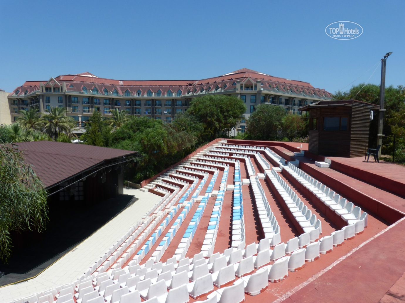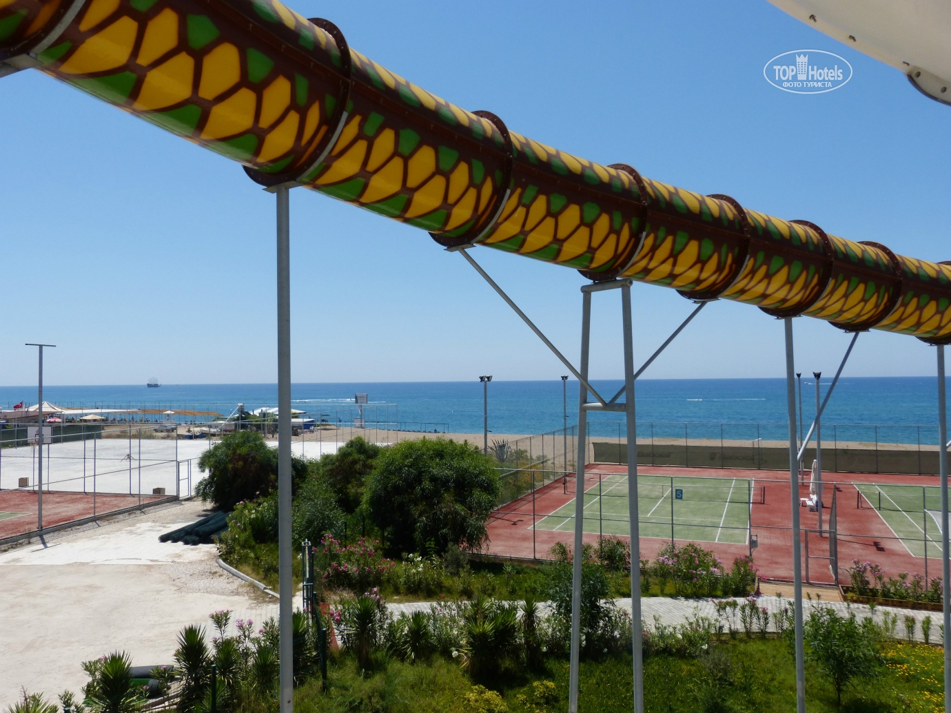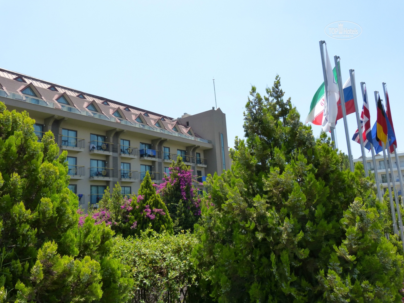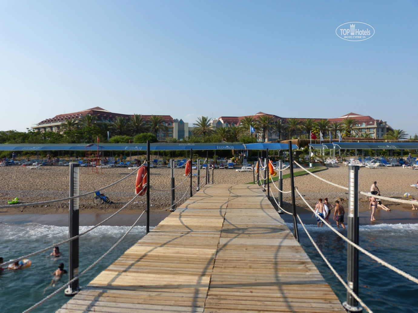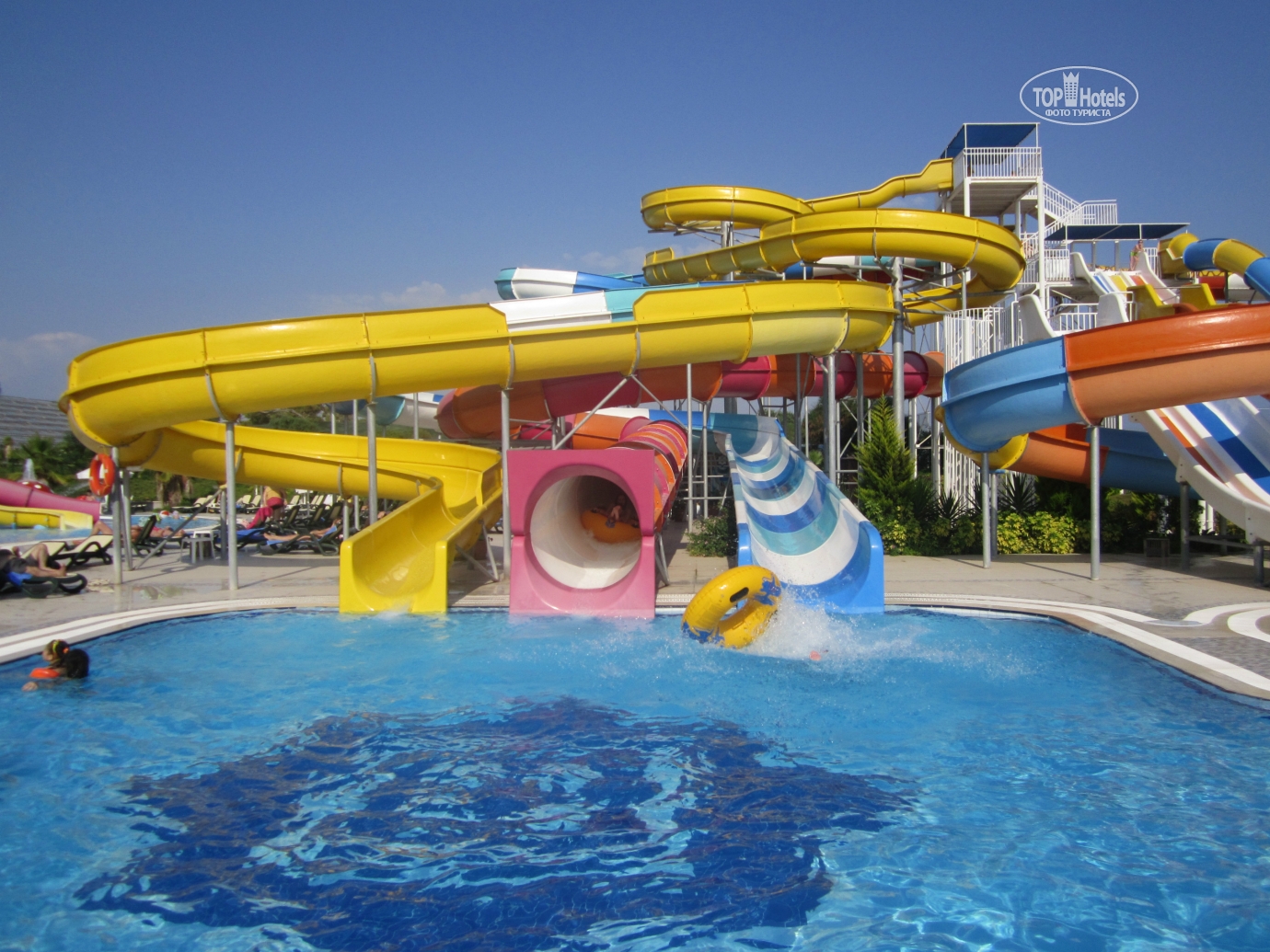 Отзыв традиционно будет большой. Отдыхала в отеле с конца июня до 9 июля. В Турции уже много раз. В этом регионе второй раз. В 2013 г. была в отеле Майя Ворлд 4*. Этот, конечно, лучше. РАЗМЕЩЕНИЕ. Приехали в отель после обеда. Дали номер в первом крыле. Сразу не просекли, что там засада: очень шумная установка под окном (закрытые двери не помогали!), мы ее прозвали «адская машина». После первой же ночи полетели менять номер. Но предложили только номер с видом на море за 150 долл сверху. Посмотрели. Очень-очень красивый вид, сам номер 1 в 1, как наш. Жаба не позволила туда переехать. Решили, что за такие деньги лучше в Памуккале съездим. Рецепшн брали осадой, и на следующий день нам заменили номер на такой же стандарт, но во втором крыле. Там пели птички, и приятно пахло хвоей. Были рады. Кстати, помогал в замене номера гид, даже 2, но в результате больше всего старался русскоязычный мальчик с рецепшн. Взятки можете не совать - там везде камеры. Сам номер вполне приятный. Есть зона для отдыха и чайник, что порадовало. В номере все полки в ванной держались на соплях. Забили. Не полки. На проблему забили. ТЕРРИТОРИЯ. Отель большой, и в этом его огромный плюс: нет скученности. Особенно порадовал пляж: большой, просторный, лежаки есть всегда. Например, мы всегда занимали первую линию, в любое время. Вход в море хороший, никаких плит, но сразу глубоко (для меня это плюс). Есть пирс с лежаками и зонтиками. Много бассейнов с различной глубиной. Аквапарк - приятное дополнение к отдыху. Все горки нестрашные. Много баров. Ресторан основной один, но тоже большой, поэтому проблем нет. СЕРВИС. Персонал в целом старается, но невозможно не отметить отвратительную уборку в номерах. Благо, к этому были психологически готовы благодаря отзывам в интернете. Иногда ловили уборщицу на коридоре, но чаще забивали на это. Чаевые только прибавляли количество гелей и туалетной бумаги, даже второй пульт от ТВ появился, но на чистоту чаевые никак не влияли. Кстати, с горничной приходилось говорить по-турецки. В результате это первый отель, где я при выселении не оставила чаевые за уборку номера. К слову, мои тапки для номера из белых превратились просто в черные. Если бы я в них ходила по территории отеля, они были бы намного чище, потому что сам отель чистенький. Повара-официанты-носильщики стараются. Рецепшен немного тупит, но всё же работает. Аниматоры временами ленятся, но пытаются даже это делать с шутками. ПИТАНИЕ. Не спец я этот раздел описывать. Всё достойно. Еды выбор приличный. Отравлений никаких не наблюдалось. Выпечка слабая, а вот разнообразие фруктов приятно порадовало: арбузы, дыни, персики, нектарины, абрикосы, апельсины, грейпфруты, виноград, сливы, яблоки были всегда. Раз дали черешню. Если что-то заканчивается, то приносят снова. Можно даже челу сказать, что что-то закончилось – принесут. А еще наливают шампанское. Наедались от пуза. Питание круглосуточно. Даже ночью ресторан работает, в ограниченном ассортименте, конечно. В ресторане на моих глазах рухнул потолок в углу, где булочки. Вместе с ним упал потолочный плинтус. Никто не пострадал. Место быстро отгородили, а позже завесили эту часть турецкими флагами – не подкопаешься. Это так - лирическое отступление. КОНТИНГЕНТ. Почти одни русские и украинцы, но тагила нет, что радовало. На втором месте турки и казахи. Их где-то поровну. Ну, 