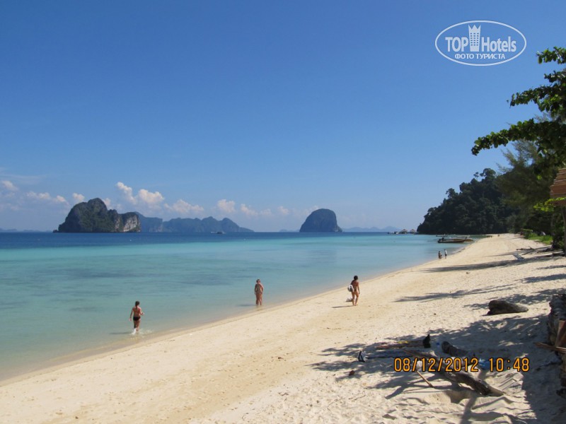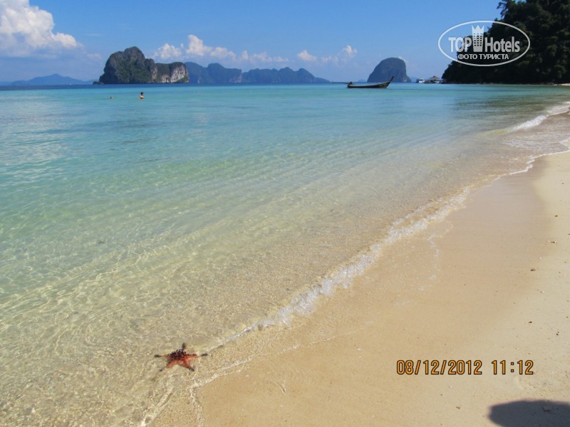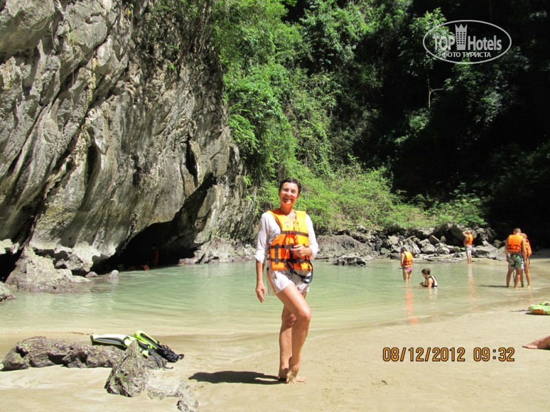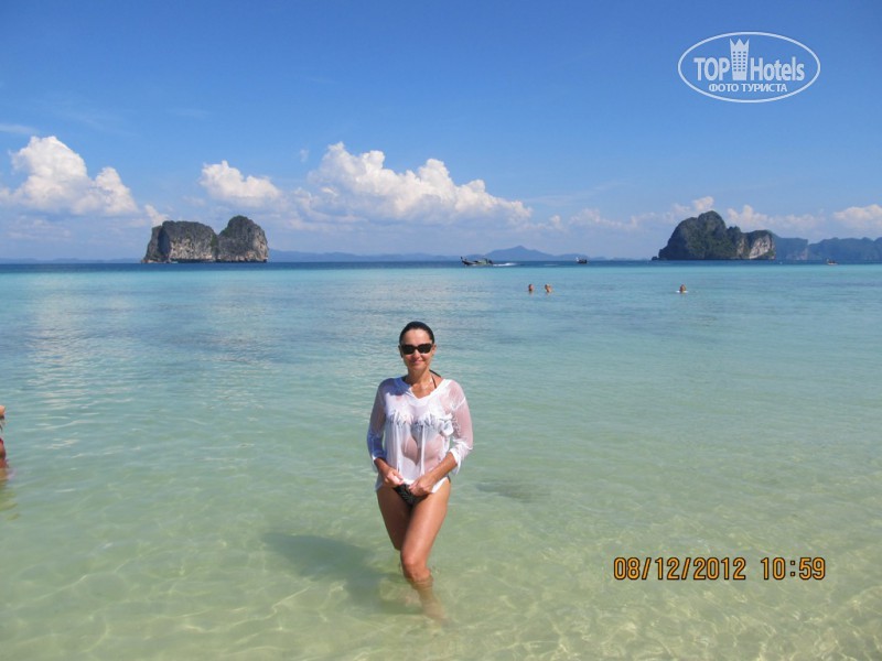 Особая благодарность Библио глобусу(за троих заплатили всего 96т.р и это за две недели).Не первый раз на Кароне поэтому рассматривали этот отель только из за самого удачного расположения к морю.Отель полупустой всетаки декабрь.Спертый запах сырости номера по началу загнал нас в уныние.подушки из поддельного латекса ужасно не удобные.Если едете в двоем подойдет и стандарт(утопают в зелени).Нас было трое поэтому и супериор № 72 был маловат(общежитие с потайной дверью) Горячей воды в кране нет, только в душе,поэтому распарить щетину было проблематично. Но какой номер можно получить за одну тысячу рублей?..Нас ждал остров Ланта!Для полноценной поездки надо не меньше трех дней. Так как все самые интересные экскурсии были уже позади.В этот раз брали полет Гибона и Рафтинг все по максимальной прграмме. было решено проложить свой маршрут.Зтим опытом и хочу поделиться. Паром до Ланты(двух палубник с кондиционером, баром и приличными туалетами).2000р туда и обратно(заберут и привезут в отель).Есть еще спидбот стоит 1700 в один конец идет без отстановки на Пи Пи в 8.30 утра(идеальный вариант что бы увидеть всю Ланту). Мы попали на 11.00 в 13 были на Пи Пи(пересадка на другой караблик) в 14.30 отошли на Ланту.15.30 были на Ланте.Хочу отметить отличный сервис по размещению туристов в отелях Пи ПИ.Как только отошли на ПиПи сразу обошли всех пассажиров предлогая проспекты отелей.Если остаетесь вас встретят с табличкой отеля и бестлатно отвезут в отель.Также все встреча и проводы бесплатны и на Ланте. По дороге на Ланту тоже предлогался но только один отель Парадайс.Тур на Ланту и их коронку(экскурсию Фор айленд трип) как и некоторые отели я отметил еще в Москве.С парома стали звонить по отелям в одном мест нет в другом включается только факс. Решили по дороге заедем в Парадайс если что поедем дальше.20 минут на машине и Парадайс нас приятно удивил в отличии от нашего Голдена(белые а не темные потолки,безшумный кондей ,огромный номер с красивой террасочкой с видом на море.И все удовольствие так же за 1 тысячу рублей правда завтрак не включен.) Прям на рецепшене заказали экскурсию 750р с человека с обедом(Лонгтейл-лодка типа гандолы толькос мотором).Продолжительность 7 часов.Правда на спидбоде наверное было бы больше времени побродить по шикарному острову . Снорклинг возле островов после Мальдив конечно не впечатлил, а вот изумрудная пещера по которой сам плывеш в жилете и с фонариком(прихватил из дома) Джеймс бонд отдыхает! Народ плыл и неиствовствовал(как сказал бы Маменко).Несколько поворотов и ты попадаеш в ЗАТЕРЯННЫЙ МИР!!!Не земная красота льется с огромных скал заросших причудливыми растениями.Лучи солнца пробиваются через маленький колодец неба.Закалдованный лес(жаль только ни камера ни фото не могут этого передать).Даже варанчика там подснял. Ланч ( скромный) на красивом острове.На берегу нашли красивую живую звезду(не то что муляж в Доминикане).В 16.00 были в отеле и взяв байк(200р сутки) поехали осматривать остров.Дороги на Ланте свободные это не Пхукет.Даже жена и дочка попробовали. На ланте песок вязкий и серый,но вода чистая и как правило нет волны как на Кароне(многие пляжи очень каменисты особенно во время отлива)но в Парадайсе все окей. В 13.00 отошли на ПиПИ.Причем отвезли на машине отеля в порт(эта услуга уже включена).На Пи Пи усроились в Andaman Legasy(лодка 100р с че