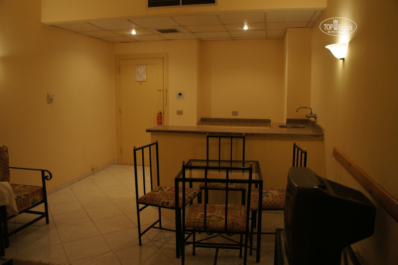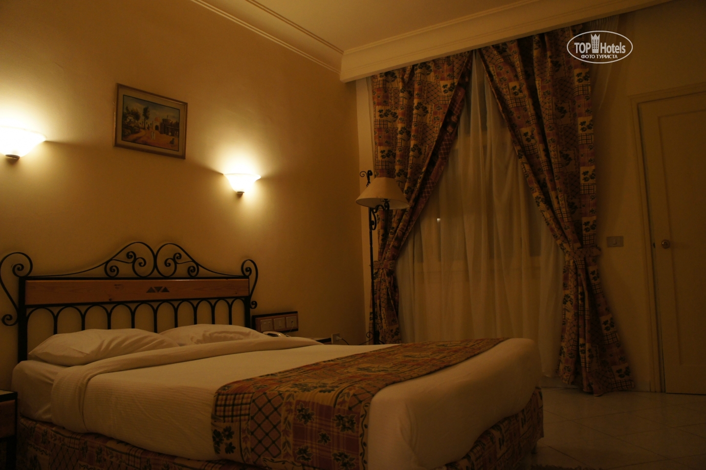 Всем интересующимся здравствуйте! Постараюсь написать реалистичный отзыв об отеле. Были в отеле с 19 апреля по 30 апреля 2014 года. 1. Размещение и Месторасположение - с аэропорта довезли за 15 минут (близко). Разместили за 10 минут, но и прибыли мы к 20 часам вечера, а размещение с 15 часов, так и задерживать не должны были. На ресепшене мы подарили подарок (так делаем в Египте) - коробку конфет, семечки, бутылку водки, от водки отказались (обычно берут). После подарка нам предложили разместиться в апартаментах, а не стандартном номере, однако попросили написать на английском и расписаться, что якобы они могут нас выселить в любой момент. Мы согласились, нас не выселяли в результате все пребывание в отеле. Номер 1223, 2 комнаты, в одной кухня,диван, стол и стулья, балкон, во второй большая кровать, балкон, тумбочки всякие, очень красиво. В обеих комнатах телевизоры, 4-5 каналов на русском, есть даже плита и посуда, конечно есть фен, как и положено. Минусы: Не работал только 1 пульт от телека. Были перепады с водой все время, моешься - то кипяток, то ледяная, то теплая, экстремально вообщем. Вода с ванной заливается по краям на пол и не стекает, сток не работает, образуется приличное болото. В остальном все нормально. 2. Сервис. Не убирались только 1 день, все остальные дни в номере убирали, заправляли постель, меняли или нет - мы не поняли, тк постель всегда оставалась белоснежной и чистой, в том числе и после нашего сна (ни чем не пачкали, в постели не ели и всяко такое). Единственное по уборке - нам не хватало туалетных принадлежностей и клали их не на двоих, а на одного (хотя номер на 2-х), приходилось за ними "охотиться". Сервис в ресторане - быстро убирают столы, все вполне чисто, всегда можно найти свободно место, чтобы поесть. Очень редко, но не хватало приборов и тарелок (в период наплыва туристов), однако докладывали посуду сразу (в течение 5 минут буквально). С блюдами также - закончилось, доложили. Приятно были удивлены, когда на пасху все сделали в стиле праздника, даже яйца крашенные во все положили, во что могли, решили нас порадовать и поздравить, и подали на удивление большущую индейку печеную. У кого день рождения - всем составом шумно выносили торт со свечкой и пели от души (весь состав ресторана),народ прям радовался. Пока ты кушаешь - также обслуживают, стараются сразу убрать все тарелки с твоего стола грязные, чтобы и тебе удобно было, и им меньше убирать. Работа баров по сервису идентична - все без очередей, работают быстро, наливают нормально, приличные стаканы по размерам, и нет нужды особо по 10 раз ходить, пены в пиве нет фактически (правильно разливают). На пляже - поправляют шезлонги, чтобы к утру все ровно стояло, песок проходят граблями каждый день, все достаточно чисто, посуду также убирают быстро, только успел допить напиток, уже стакан убрали. Также ходит администратор, девушка, собирает отзывы у посетителей отеля, на знакомство приходит и сотрудник медсанчасти (не обращались, отзыва нет). Из минусов: якобы заведено правило, что полотенце ты можешь на пляже получить только 1 раз в день. Нигде об этом не написано. Так, мы с супругом сдали полотенца и ушли на обед, после обеда очень грубо неприличный араб на стойке полотенцами наорал на меня и на супруга, испортил нам настроение (прям кричал и хамил), не выдавал полотенца и не выдал в результате. Пришлось сидеть 