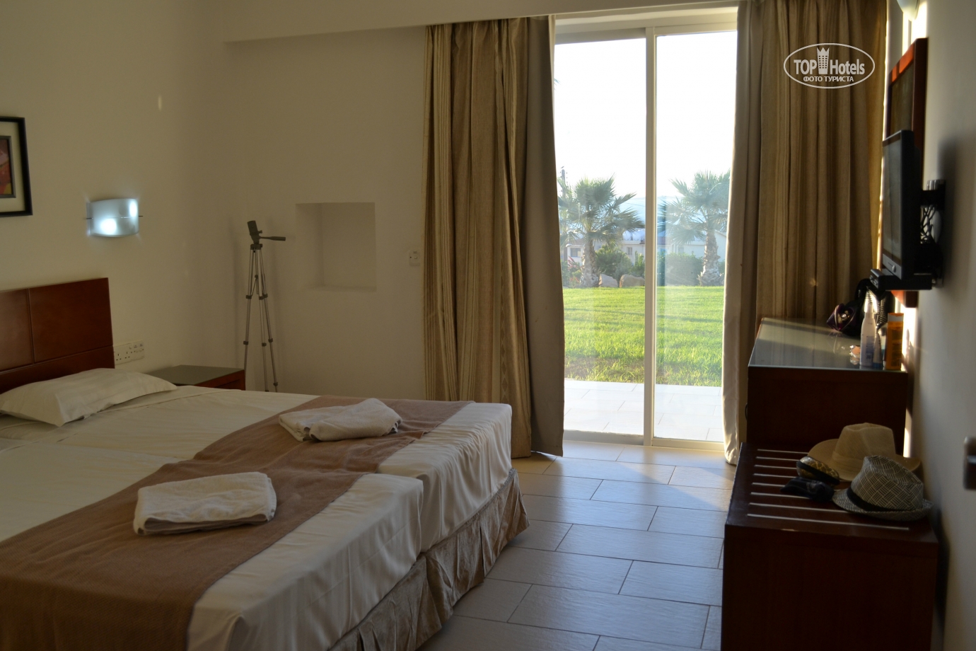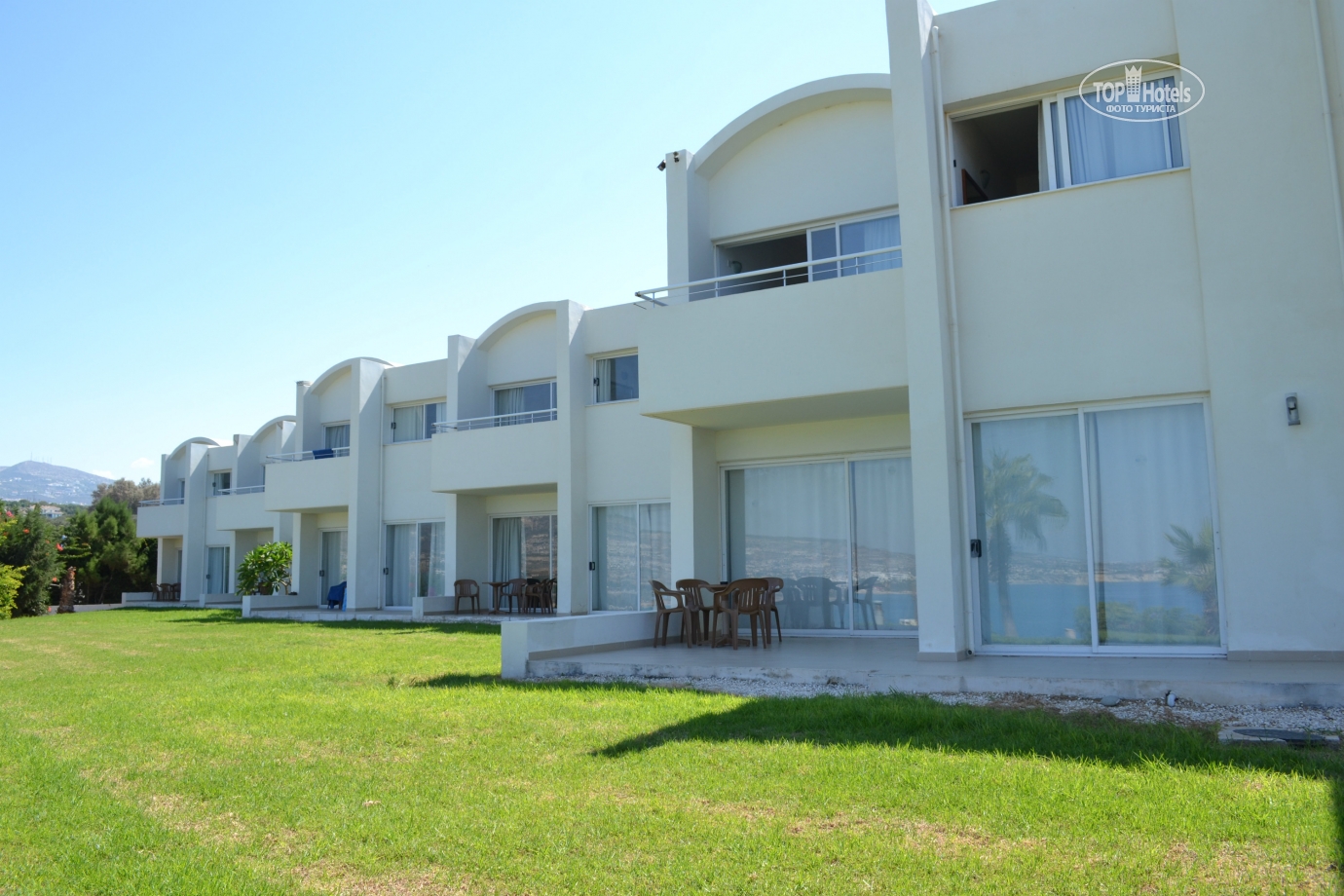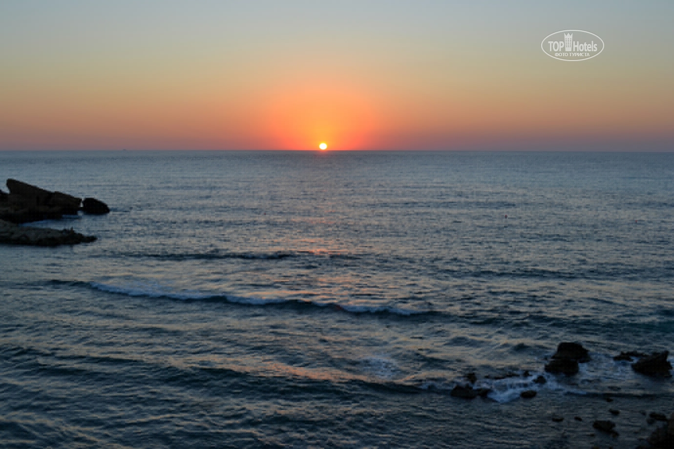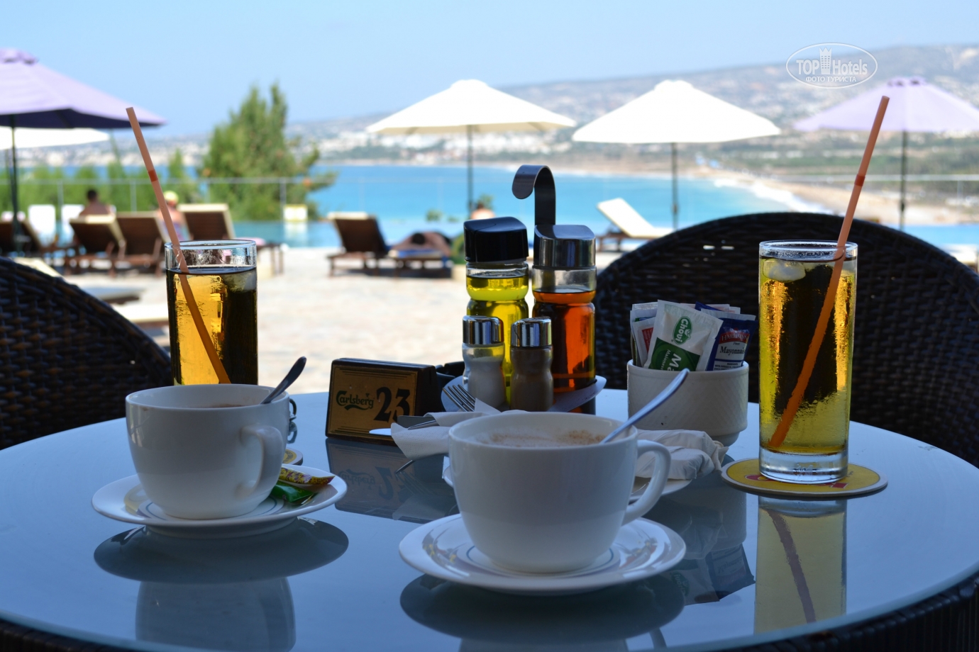 Наконец-то зарегистрировалась на tophotels и решила написать свой первый отзыв о нашем первом отдыхе за границей. На Кипре были в сентябре. Прекрасная погода, ласковое море, яркое солнце. Отель выбирали очень долго, и все таки остановились на Theo Sunset Bay Holiday Village 4*, который находится совсем недалеко от Пафоса и аэропорта. Сам отель: чудесный, красивая зеленая территория, аккуратные белые домики, панорамный бассейн с видом на средиземное море. Мы жили в номере с видом на море и зеленую лужайку, номер замечательный, просторный, чистый. Контингент: много отдыхающих, а вот наших сограждан не так уж и много, отель пользуется популярностью у иностранных туристов. Еда: мы не столь привередливы к еде, как многие, поэтому вся еда нас обычно очень устраивала, достаточно разнообразное меню, много всяких вкусностей, единственный минус - было ОЧЕНЬ мало хороших фруктов. Но нам сказали, что мы попали не в сезон. Возможно и так. При отеле есть магазинчик, там можно купить все самое необходимое, какие-нибудь продукты. Но нам всего хватало и без магазина (мы ездили по системе All inclusive). Пляж: его можно сказать нет. Минус этого отеля - до моря далековато. Очень каменистая местность, пляжа как такового нет. Есть небольшая песчаная полоска у соседнего отеля, так же есть галечный пляж справа от отеля, но до него идти 15 мин. пешком и там не особо чистая вода, большие волны и неудобный заход в море. Ближайший хороший пляж - Coral Beach, до него можно добраться на мимопроходящем автобусе, вроде 615. Вот там, конечно, ровный белый песочек и чистое спокойное море. Экскурсии: мы брали 3 экскурсии. 1.Экскурсия по Пафосу (включает в себя прогулку по достопримечательностям Пафоса, археологический музей под открытым небом, поездка в бухту Афродиты, заезжали на фабрику Рахат-Лукума, ездили в горы в Монастырь Святого Неофита-Затворника). Поездка была очень насыщенной, было очень жарко, но нам все очень понравилось. 2. Сафари на Джипах (это самая незабываемая экскурсия, мы познакомились с самым классным и веселым человеком на Кипре - Эвисом, который развлекал в течении всей поездки, шутил, пел...теперь мы вспоминаем его только с улыбками, просто очень хороший парень! на джипах мы ездили в горное ущелье Акамас, на залив Лара Бэй, где рождаются маленькие черепашки и в горы в купальню Афродиты - очень красивый водопад). Это самая классная экскурсия, советуем ее всем! 3. Аквапарк Фисури (очень интересный, большая зеленая территория, много горок). Просто хорошо провели там целый день! В целом отдых на Кипре запомнился нам на всю жизнь, отель Theo Sunset Bay Holiday Village 4* замечательный, всем советуем! Хорошего отдыха и настроения!!!