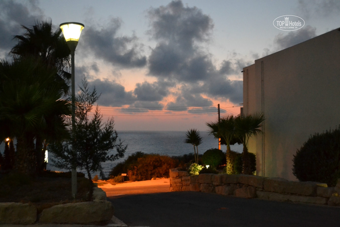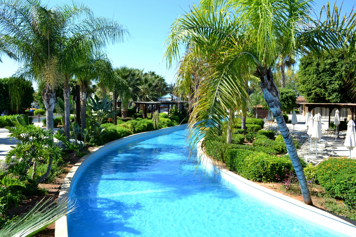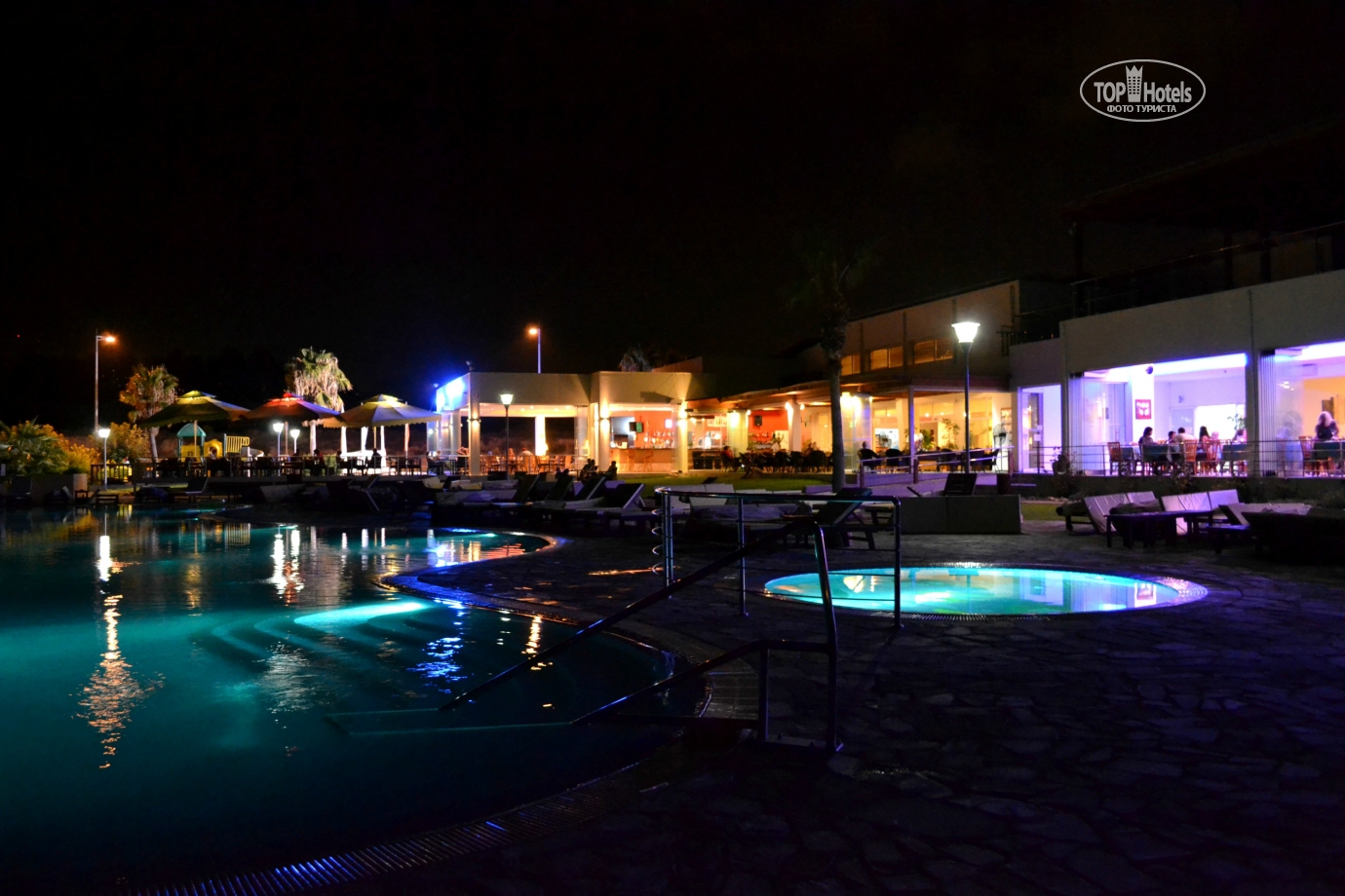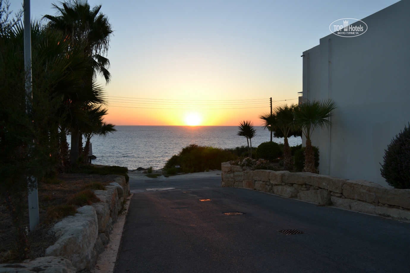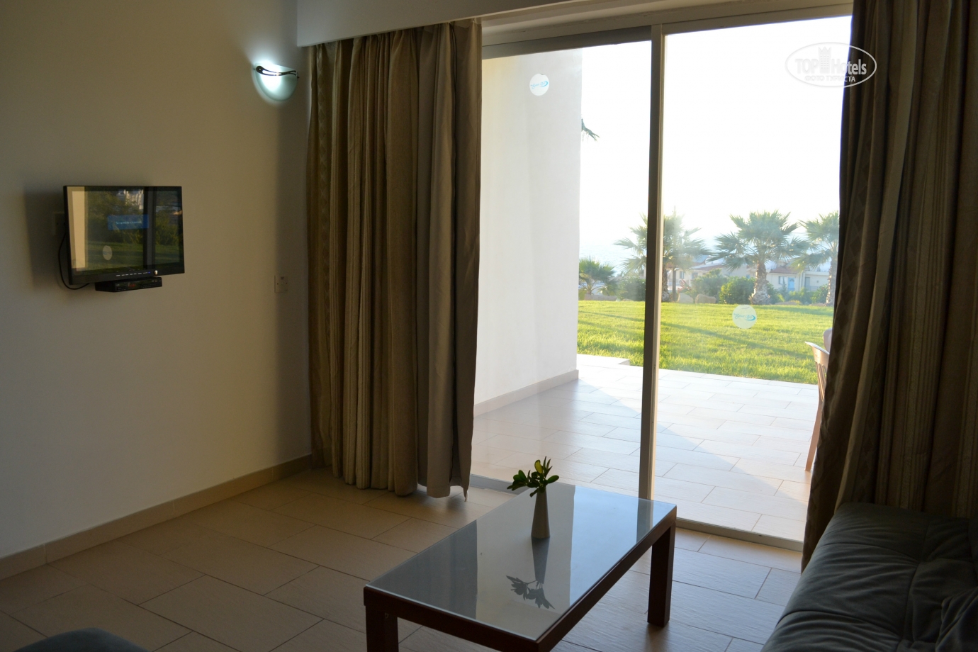 Наконец-то зарегистрировалась на tophotels и решила написать свой первый отзыв о нашем первом отдыхе за границей. На Кипре были в сентябре. Прекрасная погода, ласковое море, яркое солнце. Отель выбирали очень долго, и все таки остановились на Theo Sunset Bay Holiday Village 4*, который находится совсем недалеко от Пафоса и аэропорта. Сам отель: чудесный, красивая зеленая территория, аккуратные белые домики, панорамный бассейн с видом на средиземное море. Мы жили в номере с видом на море и зеленую лужайку, номер замечательный, просторный, чистый. Контингент: много отдыхающих, а вот наших сограждан не так уж и много, отель пользуется популярностью у иностранных туристов. Еда: мы не столь привередливы к еде, как многие, поэтому вся еда нас обычно очень устраивала, достаточно разнообразное меню, много всяких вкусностей, единственный минус - было ОЧЕНЬ мало хороших фруктов. Но нам сказали, что мы попали не в сезон. Возможно и так. При отеле есть магазинчик, там можно купить все самое необходимое, какие-нибудь продукты. Но нам всего хватало и без магазина (мы ездили по системе All inclusive). Пляж: его можно сказать нет. Минус этого отеля - до моря далековато. Очень каменистая местность, пляжа как такового нет. Есть небольшая песчаная полоска у соседнего отеля, так же есть галечный пляж справа от отеля, но до него идти 15 мин. пешком и там не особо чистая вода, большие волны и неудобный заход в море. Ближайший хороший пляж - Coral Beach, до него можно добраться на мимопроходящем автобусе, вроде 615. Вот там, конечно, ровный белый песочек и чистое спокойное море. Экскурсии: мы брали 3 экскурсии. 1.Экскурсия по Пафосу (включает в себя прогулку по достопримечательностям Пафоса, археологический музей под открытым небом, поездка в бухту Афродиты, заезжали на фабрику Рахат-Лукума, ездили в горы в Монастырь Святого Неофита-Затворника). Поездка была очень насыщенной, было очень жарко, но нам все очень понравилось. 2. Сафари на Джипах (это самая незабываемая экскурсия, мы познакомились с самым классным и веселым человеком на Кипре - Эвисом, который развлекал в течении всей поездки, шутил, пел...теперь мы вспоминаем его только с улыбками, просто очень хороший парень! на джипах мы ездили в горное ущелье Акамас, на залив Лара Бэй, где рождаются маленькие черепашки и в горы в купальню Афродиты - очень красивый водопад). Это самая классная экскурсия, советуем ее всем! 3. Аквапарк Фисури (очень интересный, большая зеленая территория, много горок). Просто хорошо провели там целый день! В целом отдых на Кипре запомнился нам на всю жизнь, отель Theo Sunset Bay Holiday Village 4* замечательный, всем советуем! Хорошего отдыха и настроения!!!