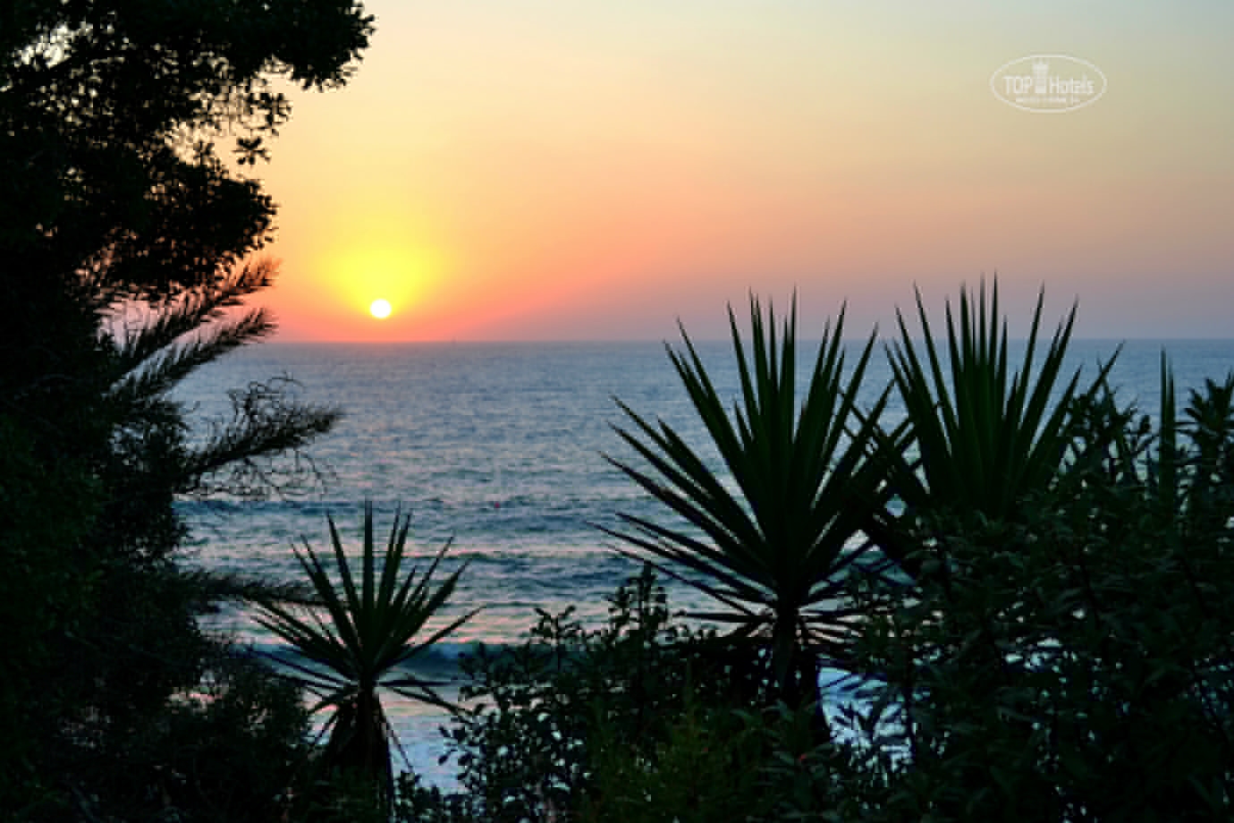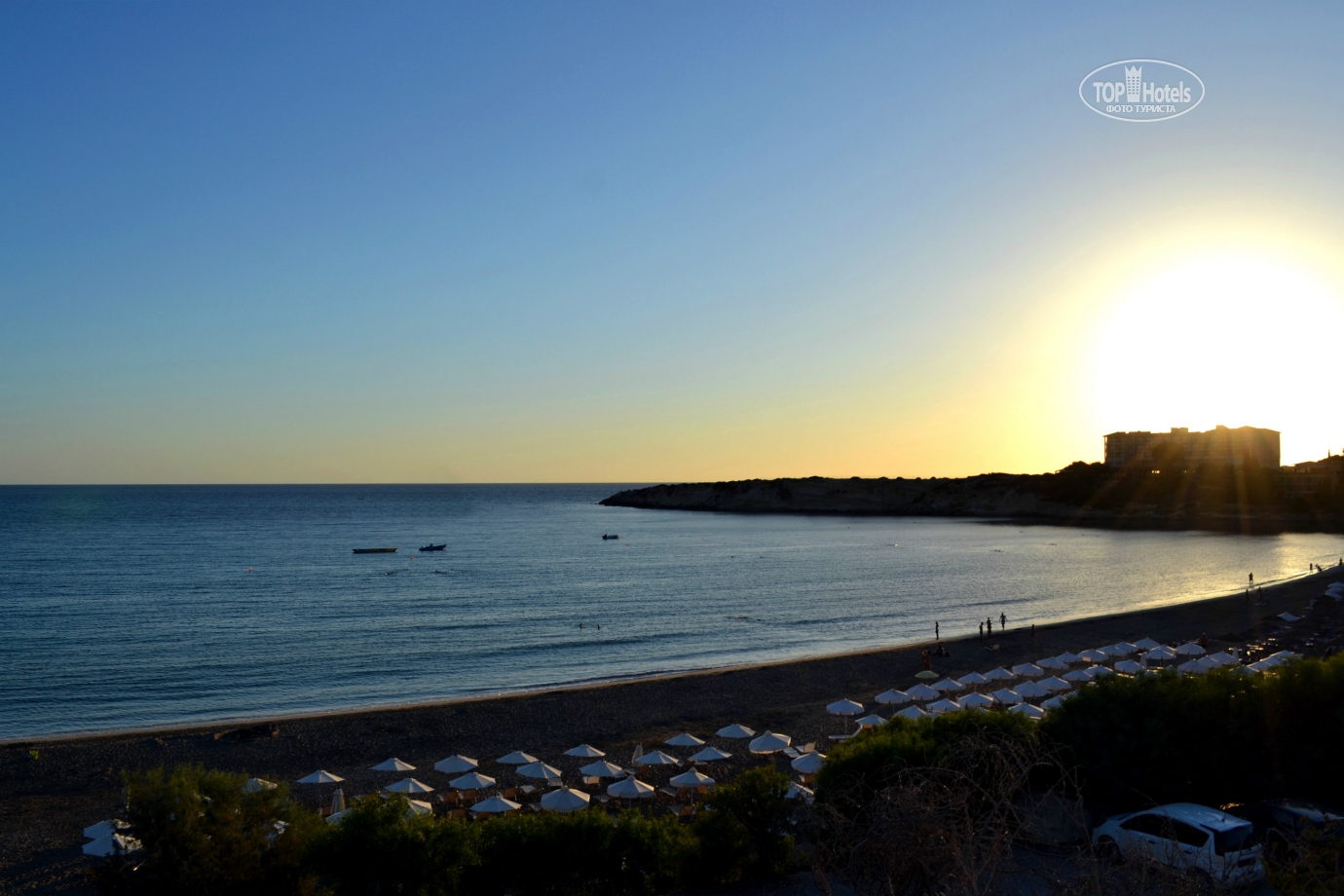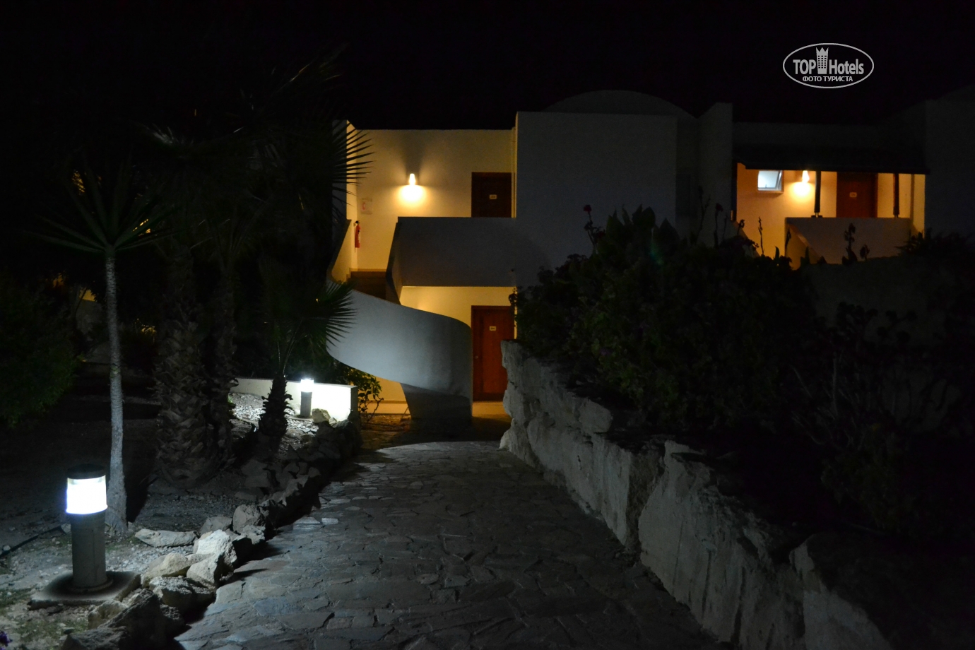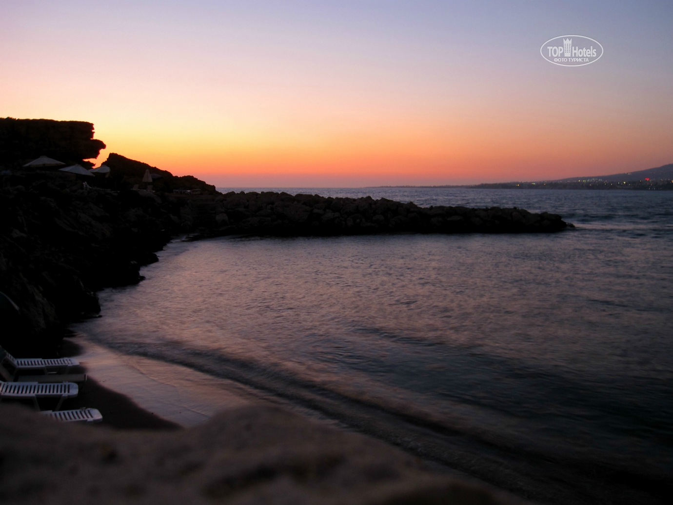 Наконец-то зарегистрировалась на tophotels и решила написать свой первый отзыв о нашем первом отдыхе за границей. На Кипре были в сентябре. Прекрасная погода, ласковое море, яркое солнце. Отель выбирали очень долго, и все таки остановились на Theo Sunset Bay Holiday Village 4*, который находится совсем недалеко от Пафоса и аэропорта. Сам отель: чудесный, красивая зеленая территория, аккуратные белые домики, панорамный бассейн с видом на средиземное море. Мы жили в номере с видом на море и зеленую лужайку, номер замечательный, просторный, чистый. Контингент: много отдыхающих, а вот наших сограждан не так уж и много, отель пользуется популярностью у иностранных туристов. Еда: мы не столь привередливы к еде, как многие, поэтому вся еда нас обычно очень устраивала, достаточно разнообразное меню, много всяких вкусностей, единственный минус - было ОЧЕНЬ мало хороших фруктов. Но нам сказали, что мы попали не в сезон. Возможно и так. При отеле есть магазинчик, там можно купить все самое необходимое, какие-нибудь продукты. Но нам всего хватало и без магазина (мы ездили по системе All inclusive). Пляж: его можно сказать нет. Минус этого отеля - до моря далековато. Очень каменистая местность, пляжа как такового нет. Есть небольшая песчаная полоска у соседнего отеля, так же есть галечный пляж справа от отеля, но до него идти 15 мин. пешком и там не особо чистая вода, большие волны и неудобный заход в море. Ближайший хороший пляж - Coral Beach, до него можно добраться на мимопроходящем автобусе, вроде 615. Вот там, конечно, ровный белый песочек и чистое спокойное море. Экскурсии: мы брали 3 экскурсии. 1.Экскурсия по Пафосу (включает в себя прогулку по достопримечательностям Пафоса, археологический музей под открытым небом, поездка в бухту Афродиты, заезжали на фабрику Рахат-Лукума, ездили в горы в Монастырь Святого Неофита-Затворника). Поездка была очень насыщенной, было очень жарко, но нам все очень понравилось. 2. Сафари на Джипах (это самая незабываемая экскурсия, мы познакомились с самым классным и веселым человеком на Кипре - Эвисом, который развлекал в течении всей поездки, шутил, пел...теперь мы вспоминаем его только с улыбками, просто очень хороший парень! на джипах мы ездили в горное ущелье Акамас, на залив Лара Бэй, где рождаются маленькие черепашки и в горы в купальню Афродиты - очень красивый водопад). Это самая классная экскурсия, советуем ее всем! 3. Аквапарк Фисури (очень интересный, большая зеленая территория, много горок). Просто хорошо провели там целый день! В целом отдых на Кипре запомнился нам на всю жизнь, отель Theo Sunset Bay Holiday Village 4* замечательный, всем советуем! Хорошего отдыха и настроения!!!