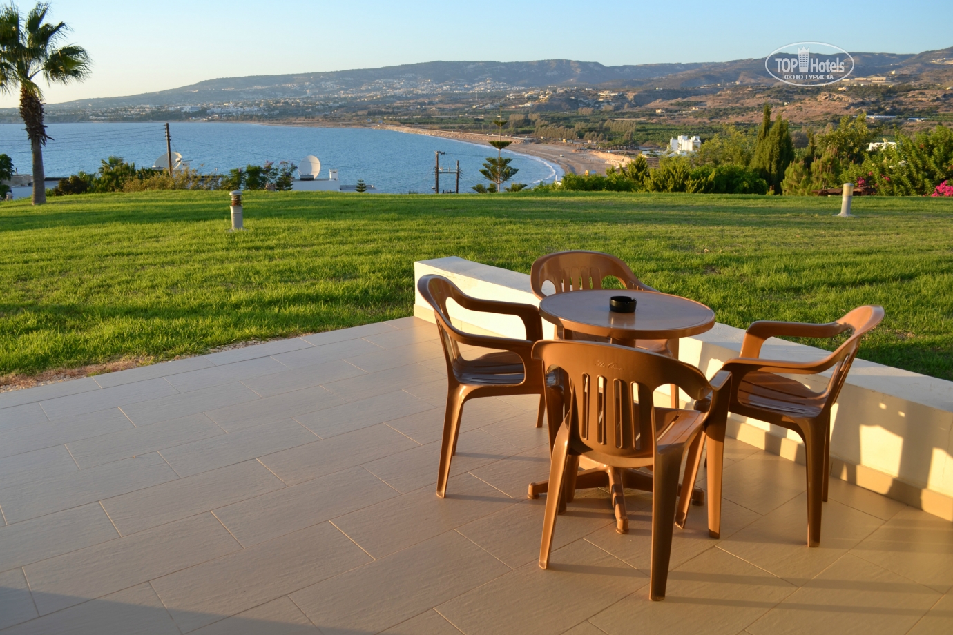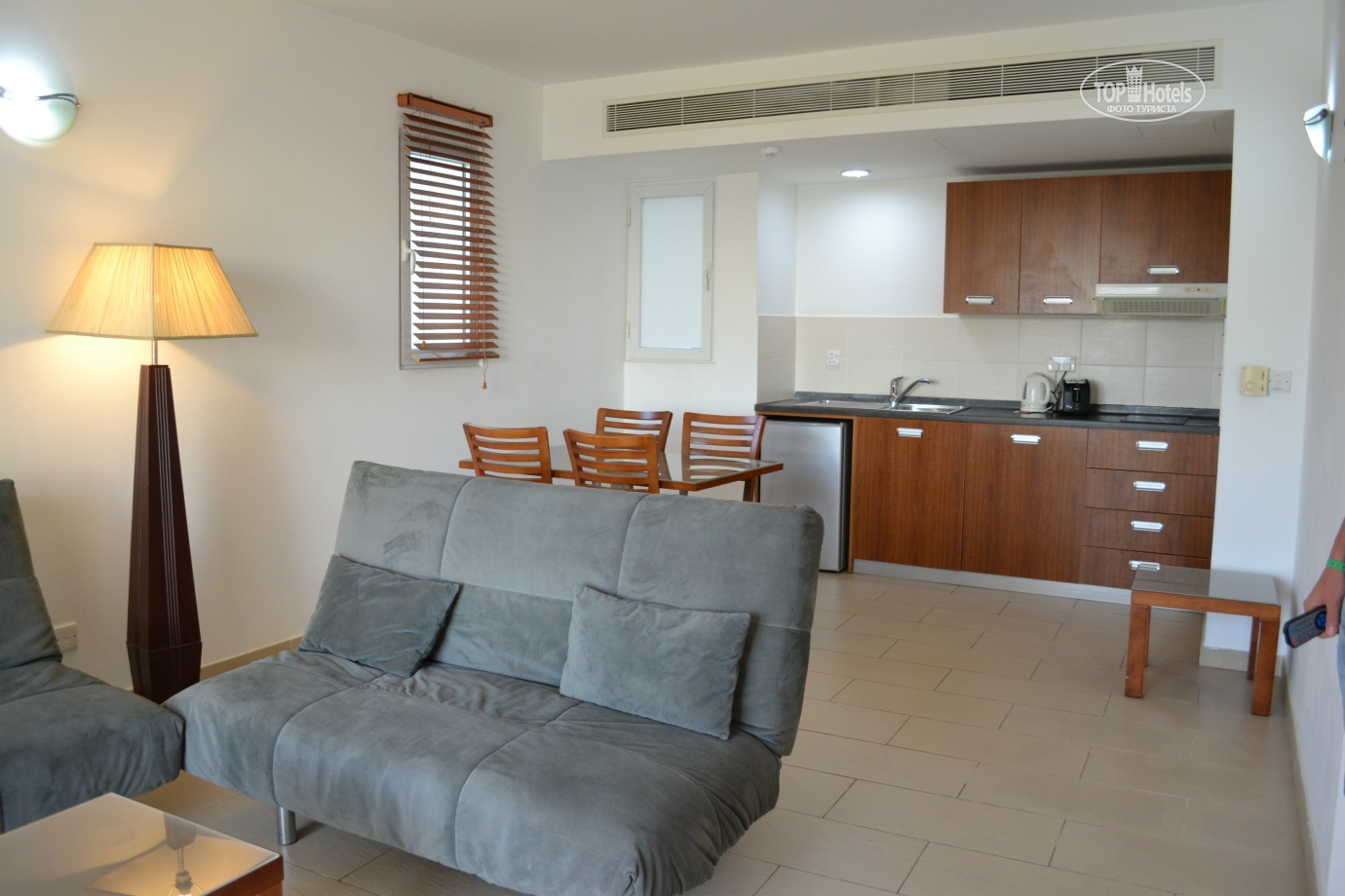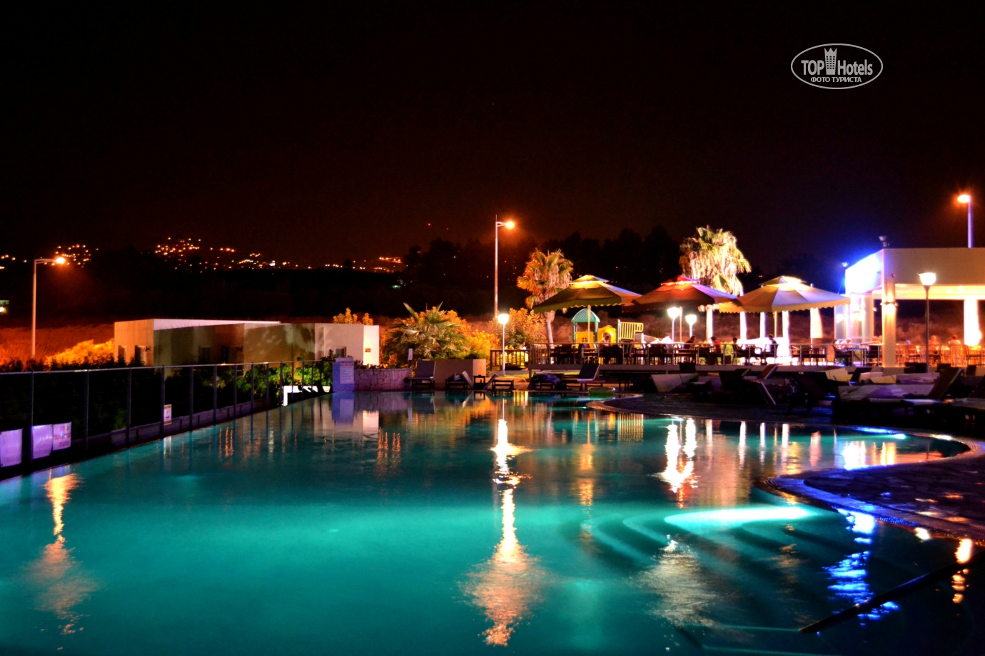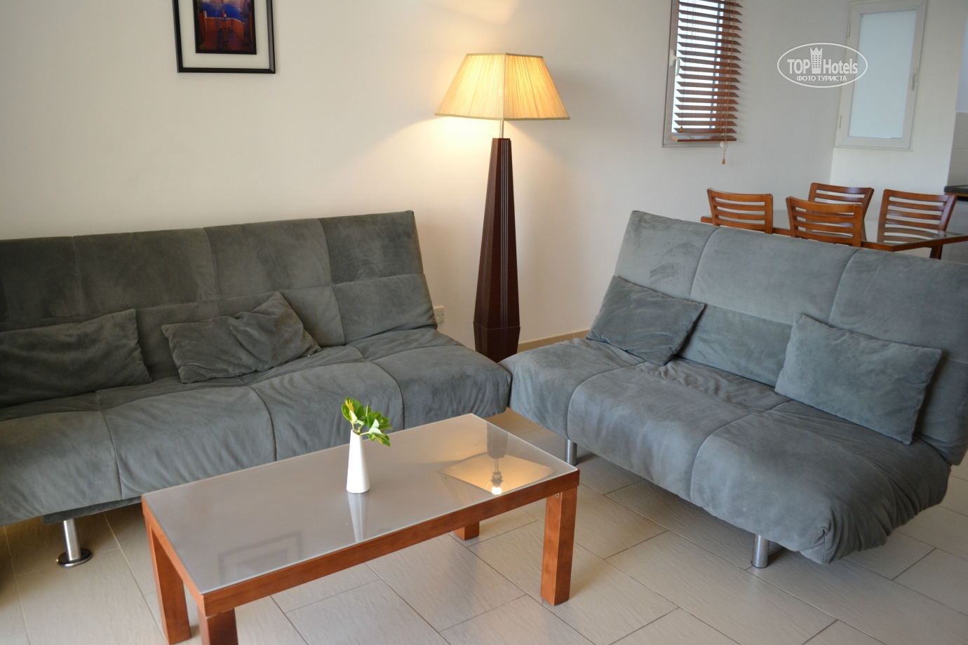 Наконец-то зарегистрировалась на tophotels и решила написать свой первый отзыв о нашем первом отдыхе за границей. На Кипре были в сентябре. Прекрасная погода, ласковое море, яркое солнце. Отель выбирали очень долго, и все таки остановились на Theo Sunset Bay Holiday Village 4*, который находится совсем недалеко от Пафоса и аэропорта. Сам отель: чудесный, красивая зеленая территория, аккуратные белые домики, панорамный бассейн с видом на средиземное море. Мы жили в номере с видом на море и зеленую лужайку, номер замечательный, просторный, чистый. Контингент: много отдыхающих, а вот наших сограждан не так уж и много, отель пользуется популярностью у иностранных туристов. Еда: мы не столь привередливы к еде, как многие, поэтому вся еда нас обычно очень устраивала, достаточно разнообразное меню, много всяких вкусностей, единственный минус - было ОЧЕНЬ мало хороших фруктов. Но нам сказали, что мы попали не в сезон. Возможно и так. При отеле есть магазинчик, там можно купить все самое необходимое, какие-нибудь продукты. Но нам всего хватало и без магазина (мы ездили по системе All inclusive). Пляж: его можно сказать нет. Минус этого отеля - до моря далековато. Очень каменистая местность, пляжа как такового нет. Есть небольшая песчаная полоска у соседнего отеля, так же есть галечный пляж справа от отеля, но до него идти 15 мин. пешком и там не особо чистая вода, большие волны и неудобный заход в море. Ближайший хороший пляж - Coral Beach, до него можно добраться на мимопроходящем автобусе, вроде 615. Вот там, конечно, ровный белый песочек и чистое спокойное море. Экскурсии: мы брали 3 экскурсии. 1.Экскурсия по Пафосу (включает в себя прогулку по достопримечательностям Пафоса, археологический музей под открытым небом, поездка в бухту Афродиты, заезжали на фабрику Рахат-Лукума, ездили в горы в Монастырь Святого Неофита-Затворника). Поездка была очень насыщенной, было очень жарко, но нам все очень понравилось. 2. Сафари на Джипах (это самая незабываемая экскурсия, мы познакомились с самым классным и веселым человеком на Кипре - Эвисом, который развлекал в течении всей поездки, шутил, пел...теперь мы вспоминаем его только с улыбками, просто очень хороший парень! на джипах мы ездили в горное ущелье Акамас, на залив Лара Бэй, где рождаются маленькие черепашки и в горы в купальню Афродиты - очень красивый водопад). Это самая классная экскурсия, советуем ее всем! 3. Аквапарк Фисури (очень интересный, большая зеленая территория, много горок). Просто хорошо провели там целый день! В целом отдых на Кипре запомнился нам на всю жизнь, отель Theo Sunset Bay Holiday Village 4* замечательный, всем советуем! Хорошего отдыха и настроения!!!