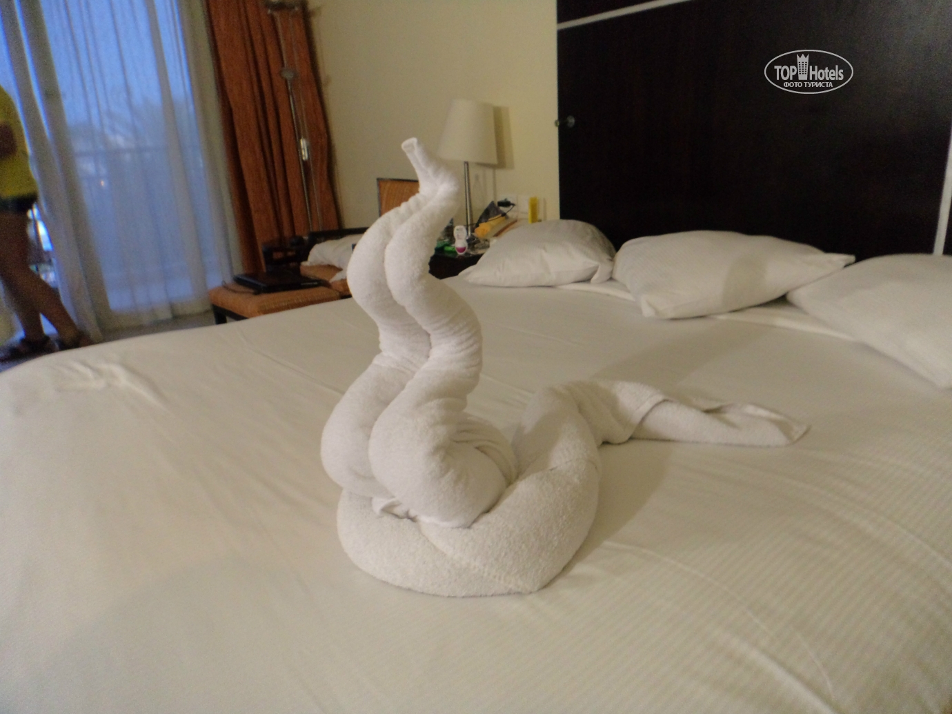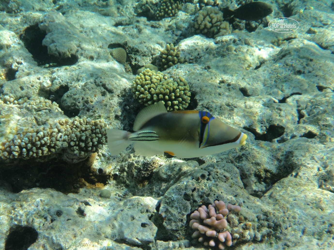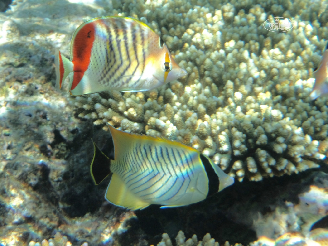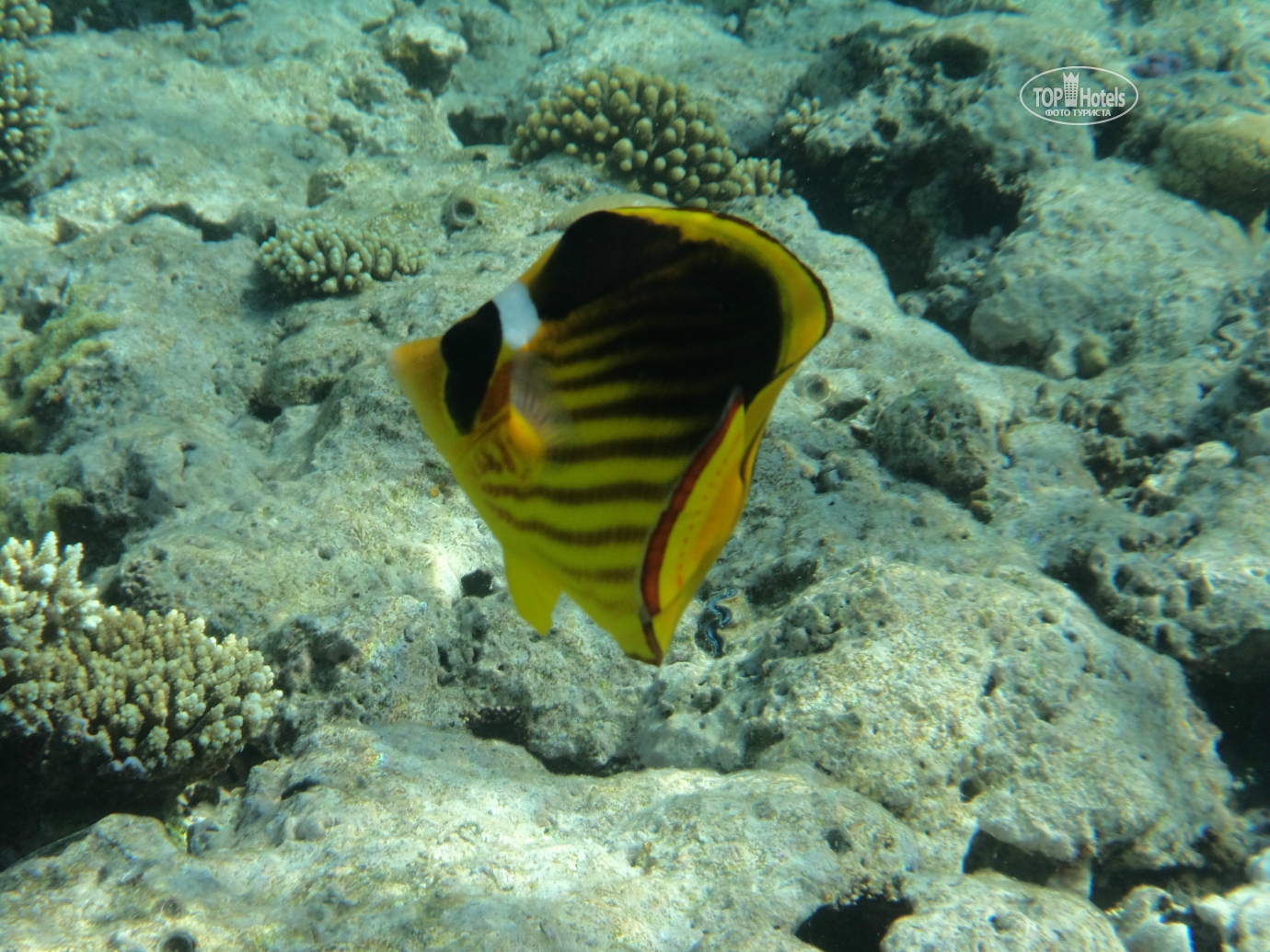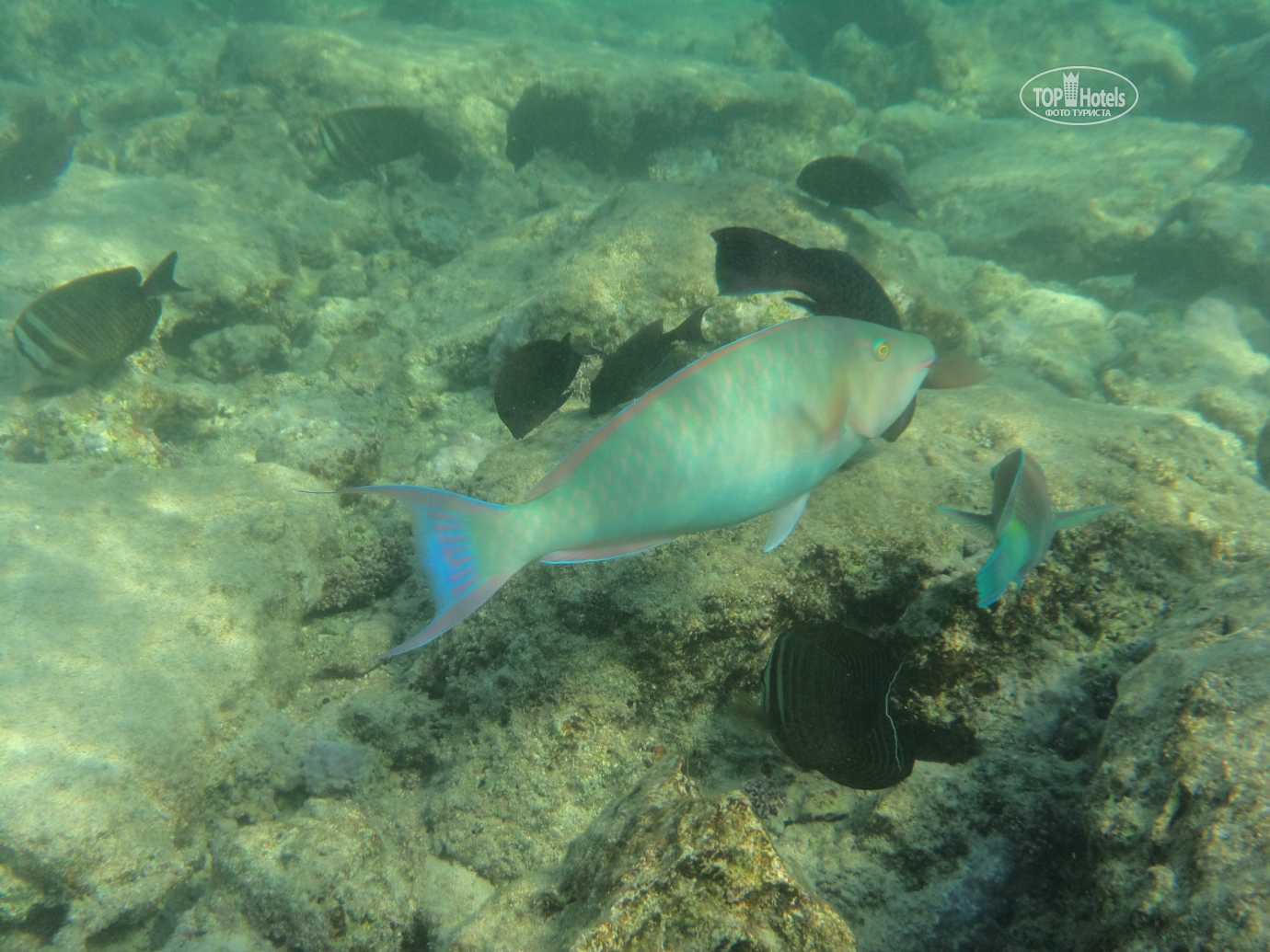 Итак, вот и мы провели свои несколько солнечных дней на берегу красного моря с 06 по 13 января 2014 года. Начну по порядку. Отпуск мы проводили вчетвером, я с супругом и его родители. Путевку приобретали у ТезТура. Летели мы авиакомпанией авиалинии Харькова, самолет боинг 737-800 из Донецка. Оба рейса (туда и обратно) по расписанию. По прилету сразу прошли на паспортный контроль, указав в миграционных картах «sinai only» и уже через 10 минут, получив заветные штампы в паспорте, сидели в автобусе, который отвез нас до отеля. В Hilton Sharks Bay мы прибыли в 18-30, заполнили на ресепшен анкеты и с ветерком на тук-туке поехали в наши номера. НОМЕРА нам достались на второй линии 4109 и 4111. Вид из номера на бассейн и во двор отеля. В одном номере были две кровати, в другом одна большая, в остальном номера не отличались: большой плазменный телевизор, но только 1 русскоязычный канал – ОРТ, в ванной комнате и ванна и душевая кабина, шампунь, кондиционер, шапочка, мыло, паста, а еще есть утюг, гладильная доска, чайник две чашки, чай, кофе, сахар, сливки, а также целых три телефонных аппарата (один даже в туалете, видимо, чтобы можно было общаться в уголке задумчивости:), в общем все прелести жизни. Кровати мягкие удобные, кондиционер работает вне зависимости от балконной двери. Убирают номера каждый день, все чистенько, крутят каждый раз новые фигурки. Насекомых в помещениях нет. Каждый день приносят полуторалитровую бутылку оды, если мало можно взять в любом баре. Уборщикам оставляли каждый день доллар, один раз шоколадку (главное, чтоб без алкоголя была). ТЕРРИТОРИЯ отеля вытянутая от моря вглубь, занимает 2-е линии, заселена в основном вторая. (Мне казалось, что на первой кто-то живет, около самого моря, но может мне и показалось). Ресепшены работают на обеих линиях. По территории курсирует автобус, от моря к первому решепшену, потом ко второму, потом мимо всех номеров второй линии и снова на море. Остановка у пляжа каждые 30 минут. Сама территория зеленая, но цветов было мало (зима все-таки)). Деревья аккуратно подстрижены, многие имеют форму разных фигур. На каждой линии есть бассейны, на второй – зимой подогревается. Бассейн на первой линии с 10 января на 7 недель закрыли на реконструкцию. Отель расположен близко к аэропорту, видно и слышно как взлетают и садятся самолеты, но звук не беспокоил. ЗА ТЕРРИТОРИЕЙ (со второй линии направо, с первой - налево) есть ряд магазинов, где можно купить сувениры, фрукты (по сезону), маски-ласты, есть бюро экскурсий, мини супермаркет:), сумки-чемоданы, одежка разная местная и европейская, а далее пешеходная улица Сохо (для желающих, там есть дюти-фри, но купить там можно только при наличии паспорта и в течение 48 часов по прибытии). У входа на Сохо всегда 2-3 верблюда, на них можно покататься, но дикий запах отбил все желание кататься, хотя гуаву животинки кушали на «ура», с ними можно фотографироваться. На самой Сохо, есть рестораны, детская зона, множество магазинов. В новый год улица была потрясающей украшена и сверкала как елка. В середине – поющий фонтан, включающийся каждый час. Зрелище очень красивое. Даже под русские песни исполняет свои мокрые танцы. Также на улице можно взять такси. Везде нужно торговаться, а то цену сильно завышают. Мы хотели съездить в старый город, начальная цена такси была 140 фунтов, а сторговались до 70, но все равно не поехали))) ПЕРСОН