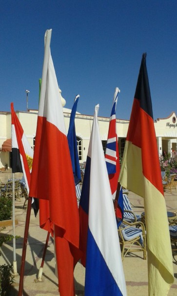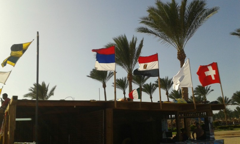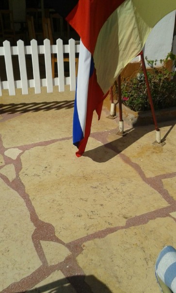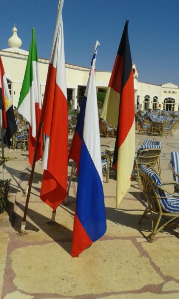 Выбрал отель из-за возможности совмещать катание на кайте и отдых ребенка. Ветер дул неплохо, но до обеда, дочь копалась в песке на берегу. Купание не возможно, до глубокой воды метров 500 по мелководью, доплыв до рифа на катамаране обнаружил мертвый коралл, рыб мало-понял, что маски-трубки тащил напрасно. При возвращении на берег в метрах 700 до берега отвалилась тяга управления рулем катамарана. Пришлось жене с дочерью крутить педали, а я лежа на корме руками управлял рулем слушая команды жены. С трудом добрались до мелководья и я как бурлак потащил это корыто до берега. Солнце уже село, ни про какую спасалку даже речи не может быть. На берегу никто не чухнулся. Сдержался не дать в ухо арабу подбежавщего с требованием поставить катамаран к причалу, заставил его грести и рулить, долго слушал унылое SORRY. В 7 утра на завтраке в большом зале РЕСтоловки сделал фуэте на луже у кофемашины приземлился на 5-ю точку разбросав в разные стороны часы, очки. Собрав себя по частям пошел зализывать раны почти МОЛЧА. Подбежали холдеи и главменагеры и стали меня убеждать что лужы НЕ БЫЛО. А в это время черт за их спинами тер тряпкой лужу и следы моей пролетарской крови. Подбежала рускаБабушка и добила главменагера -лужа БЫЛА. В качестве компенсации предложили ужин в арабском ala carte аж по 10 бак на душу. Согласился. Я не знал что Я такой ПАТРИОТ. Вышел из лобби-красота и тебе солнце и ветер и флаги по ветру полощут и тебе Египетский и немецкий и итальянский и аглицкий и даже польский, а сбоку на черенке от швабры наш РОССИЙСКИЙ лежит на плитке с пятном мазута.На ресепшене сказали что исправят, но через 30 минут нашел САМОГо главменагера и заставил постирать. Принимающая сторона весьма толково водрузив на швабру флаг Евросоюза повесила наш в центре и закрыла проблему. Но поругание флага продолжилось на пляже слева у египтян с бананами,таблетками и прочими водными развлечениями. Флаг висел висел верх ногами. На фото в желтой майке араб согласившийся перевесить его за 2 бакса. Такая же картина меня ожидала на КПП в Эллате у братьев евреев, но он был намертво врисован в потолок. Стыдно за Израиль, а мы им в 1948 г. помогли создать свое государство. Кстати там служба безопастности держала нас 4,5 часа. Сильная половина человечества проходила паспортный контроль без проблем, а вот прекрасная половина долго вспоминала девичьи фамилии матерей и отчества дедушек и бабушек. Израильские паспортистки строго выполняли заветы данные господом Йеговой и Аврааму и Мойше, касаемые отношений евреев с женщинами других племен.