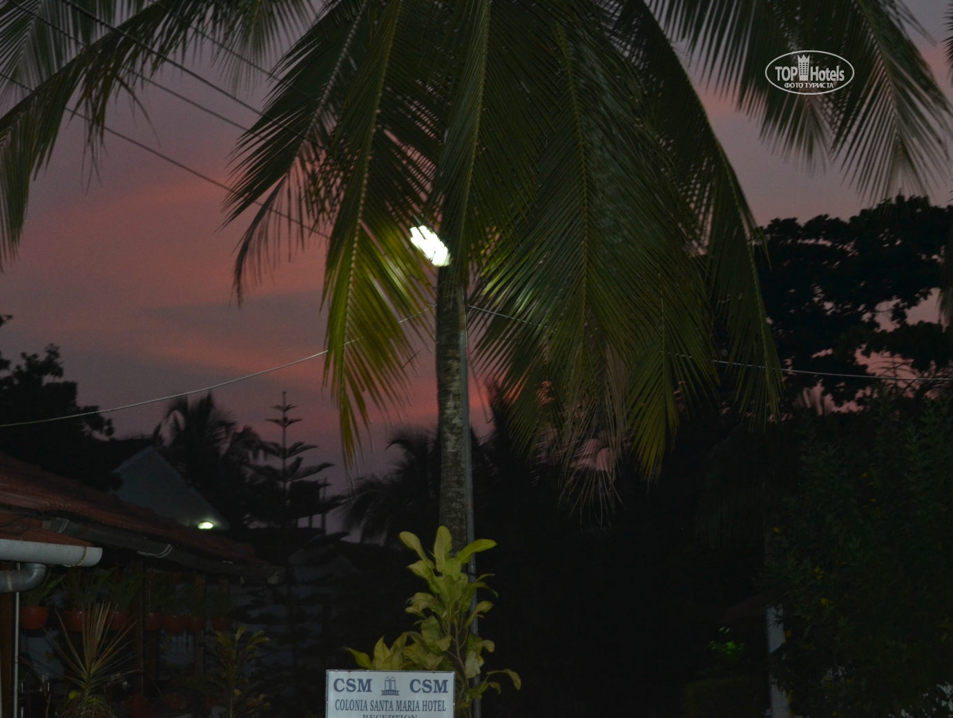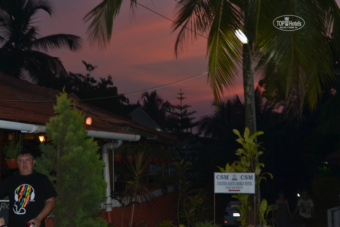 Отдыхали в этом отеле с 03 по 12 ноября 2013. Если в общем, то отель супер. Самый большой плюс этого отеля - это первая линия. Вышел из отеля, два шага и ты на пляже. Первая линия для ГОА - это очень большая редкость. Весь отель состоит из двухэтажных домиков. Вокруг чистые дорожки, ухоженные газоны, цветы. Два бассейна. Очень красиво. Завтраки нормальные. Может быть кому-нибудь покажутся скудными, но все необходимое было. Мы всегда наедались. Наши друзья жили в отеле на Калангуте, так у них завтраки были намного хуже. Номер достался стандартный. Все необходимое есть. Уборка каждый день. Все приборы работали исправно. Персонал вежливый, немного понимают по-русски. Из всех экскурсий выбрали две - ГОА за весь день (водопад, плантация специй и старый ГОА) и рыбалка. Все понравилось. Пляж отличный. Читала много отзывов о Баге, что грязно и коровы, но т.к. выход на наш пляж был только через наш отель, то было все прилично. Мы брали лежаки у шека Ксавьер. Это с правой стороны, если идти из отеля. Там хорошие коктейли и вкусно готовят. Очень понравился манго джус. 45 руб. на наши деньги. Одно сплошное пюре из манго. В отличии от Таиланда индусы не кладут в бокал лед и не добавляют сахарный сироп. В целом мне очень понравилось на ГОА. Индусы очень дружелюбные, добрые и не жадные. Очень хорошо относятся к русским. Всем своим знакомым буду рекомендовать ГОА и в особенности отель Колония Санта Мария. Одно не понятно, почему на этом сайте он значится как 2*. Ему смело можно дать 4+.