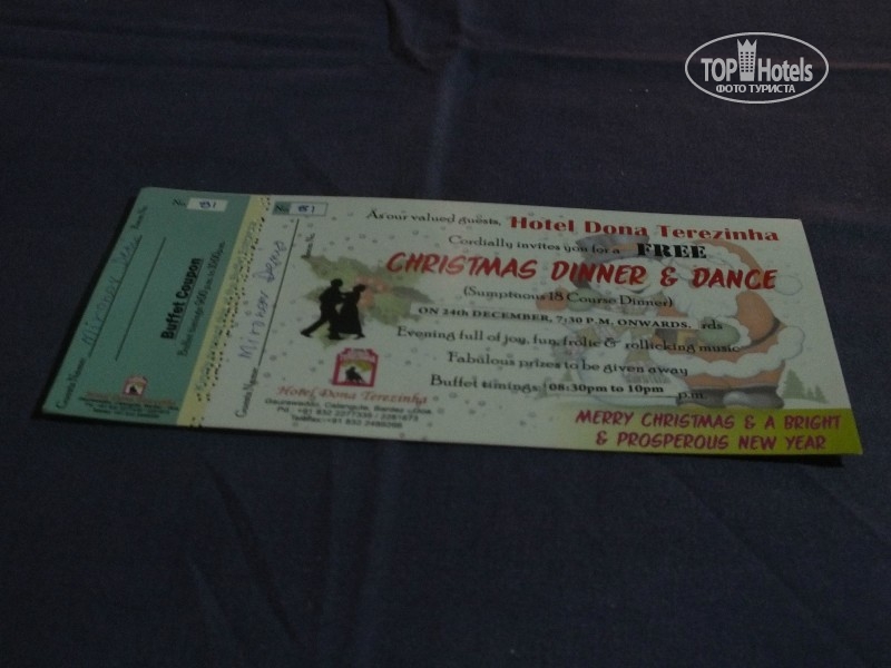 Доброго времени суток. Отдыхал в этом отеле с 20.12.2013 - 31.12.2013. Отель понравился, не для притязательных, требовательных, пассивных туристов. Обо всем по порядку. Отель расположен на границе между поселками Калангут и Кандолим. Местные считают, что это всё-таки Калангут. Территория для городского отеля 2* достаточно большая, утопающая в пальмах, цветах и газонах. Dona Terezinha представляет собой серию четырёхэтажных домов (бывший жилой комплекс). У меня лично сложилось такое впечатление, что этот жилой комплекс строился как жилье для местных, а потом переделан в отель. Об этом свидетельствуют, планировки номеров, подъезды в каждый дом, аналогичные жилые комплексы в Кандолиме. Хотя это неважно, просто личное наблюдение. За счёт большой территории и отсутствия по близости шумных тусовок, место относительно тихое, по сравнению с той же Багой. Отель стоит у главной дороги, что позволяет рассматривать его как удобную отправную точку для пешеходных прогулок и "путешествий на колёсах" (или под колесами - у кого как лучше получается) по штатам Гоа, Карнатка, Махараштра. Все гоанцы знают этот отель, проблем с такси не будет. Привезли меня в отель в 10:45. Заспанная, с каменным лицом сотрудница ресепшен взяла паспорт, подала ключи от номера, сказала вернуться за паспортом через 15 минут, а она пока заполнит анкету. Тут же налетела куча индусов, выхватывающие мой чемодан, на что получили вежливый отказ. Индусы не угомонились. Вшестером повели меня в номер. В номере все показали, предложили байк и "покурить". На что опять получили отказ. Немного расстроенные поспешили удалиться. Номер был очень скромен. Практика отдыха в Азии у меня была, я знал куда еду + непростой ночной перелет сделал своё чёрное дело и я принял всё за чистую монету. В огромном номере были только шкаф, две кровати, два кресла, зеркало и "пропеллер" на потолке, балкон с видом на жилой двор индусов. "Номер" - трёхкомнатная квартира. Две комнаты были на замке. Сантехника была не новой, но первой свежести. Постельное к моему удивлению было свежим и чистым. Полотенца были застиранными, да и Бог с ними. Мне главное, чтобы была крыша над головой, кровать и санузел. В других номерах были холодильник и маленький ЖК телевизор. По мне так по кайфу оказалось не слышать две недели новости о терактах, коррупции, что кого-то где-то убили, износиловали и т.д. Отдохнул душой и мозгом, т.к. этого добра хватает на Родине. Слышимость в номере средняя. Не то, чтобы слышно каждый шорох соседей (как в отелях Испании), но отголоски громких разговоров, смачные отрыжки соседей по вечерам было слышно. Утром почему-то орал персонал. Подъём был всегда в районе 9. Сейф есть за ресепшен (отдельная комната с ячейками). Стоимость символическая 50 Rp / сутки + залог 500 Rp. Залог возвращают без проблем. Время работы сейфа строгое. После 20:00 Вам его не откроют, т.к. хозяин уходит домой в 8 и забирает с собой ключи от комнаты, имейте это в виду. В ячейку войдут только паспорта, деньги и камера. Ноутбуки, нетбуки и прочие представители среднегабаритной и крупногабаритной техники - нет. Несмотря на первый этаж насекомых почти не было. Программа "В мире животных" не состоялась. Первые 7 дней не было никого, на 8-9 пошли муравьи, 10-12 снова никого. Не роняйте пищу на пол, да будет вам счастье! Ни одного комара не было за 12 дней. Возможно это было компенсацией за номер :-)