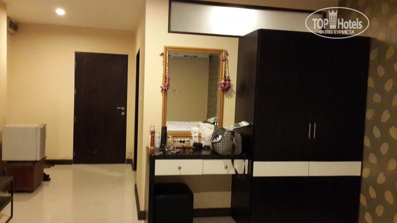 Писать о том, какой замечательный отдых в Тайланде и что это сказка, не буду! Об этом и так большинство знают, буду по существу конкретно про отель. В Тайланде, и в частности в Паттайе уже 6-й раз, жили в разных отелях, всегда брали 3*, т.к. для нас это за глаза, т.к. в отеле находимся мало! НО... тройка тройке рознь, т.е. сравнить нам было с чем! До этого отдыхали 3 раза в Sea Breeze, Eurostar Hotel Resort, Jomtien Palm Beach и Sarita Salet. Так вот из всех отелей Jomtien Plaza оказался самым скромным во всех отношениях!. Начну с того, что расположение у самого отеля просто замечательное (это было одним из главных критериев при выборе), все в шаговой доступности: рестораны, магазины, обменники, тук-туки, массажные салоны (их куча на Ваш выбор прям рядом с отелем), рядом пляж в 2 минутах. Приехали в отель в районе 11-00 утра, с улыбкой переговорили с парнем на ресепшене, оставили депозит 50 долл. и сразу попросили номера с ванной (заранее начитавшись отзывов), парень сказал, что без проблем, только придется подождать 14-00 до заселения, как и положено время заселения в 14-00. Решили посидеть передохнуть с дороги, и уже буквально минут через 20, тот же самый парень подошел к нам и вручил ключи. Сразу же мы взяли ключи и от сейфа, он находится слева от ресепшена. К размещению при заезде претензий у нас нет. Все на пятерочку. Вещи помогли донести до номера, номера были заказаны делюкс. Заселили нас в Корпус А (номер А-305) (тот что ближе к морю), наших друзей в корпус С (номер С-209) (самый дальний от моря). Что касается номеров, вроде мебель не старая, но изрядно замызганная, наш номер (корпус А) был с видом на отель Палм Бич, никаких посторонних шумов с улицы не было, и шум автобусов мы не слышали. Кондер работал исправно, и не от чипа на ключе, поэтому уходя из номера его можно спокойно оставлять включенным. В номере кровать большая (у нас были две сдвинутые между собой, дискомфорта не было). У друзей была одна большая. Был шкаф с вешалками (около 6-7 штук), трюмо с зеркалом, тв, фен, холодильник (без мини-бара), диванчик кожаный, столик, чайник (грязный очень - не пользовались), кружки, стаканы. В Тае с убокрой в принципе не айс, они не заморачиваются, здесь было не исключение, по приезду протерла сама стол и вешалки влажной салфеткой (может я слишком придираюсь). Ванная комната тоже достаточно большая, в нашем номере не было в ванной зеркала, это очень напрягало(((( У друзей в корпусе С зеркало было. Ванная более менее чистая. Полотенец лицевых не хватало, попросили горничную, дала без проблем. Большие полотенца были, ножное тоже. Полотенца в номере были чистые на всем протяжении отдыха. Что не скажешь о постельном белье! Для меня в принципе не так важно, как выглядит мебель, пошарпанная она или нет, есть ли пятна на обоях, но постельное белье - ЭТО СВЯТОЕ! Постельное было постоянно в пятнах, как будто нам приносили его не после стирки, а из какого-то номера, в котором только что убрались! Брезгливо было до ужаса! То оно было серым, то в каких-то желтых подтеках, то просто желтое ,как будто кто-то помочился, для меня это неприемлемо! И причем менять просить смысла нет, похоже, что оно все такое (во всяком случае в корпусе А), друзья, которые жили в корпусе С, сказали, что белье было чистое! Видимо нам просто не повезло с горниной или прачкой, вобщем впечатление о сервисе оооочень подпортилось, потому что приходилось изощраться спать то без одеял
