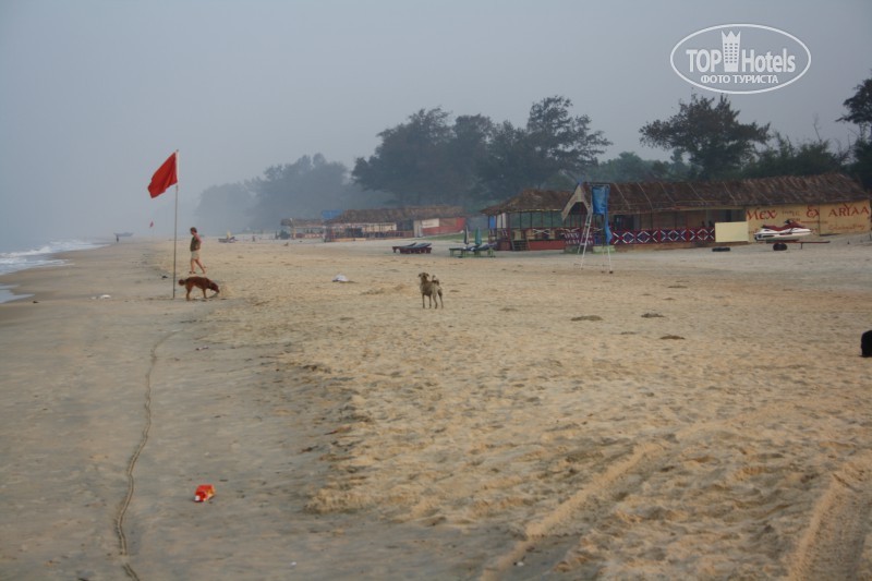В Индии, точнее на ГОА были в первый раз. Отдыхали в ноябре 2012 г. С огромным теплом вспоминаю эти 2 недели.....почти как в рае на земле. Масса классных фото и еще больше различных впечатлений! Приехали в отель в 7 утра. После 7-ми часового перелета были просто никакими. Заселить обещали в 10.00. Пока не заселили пошли на море......тишина....утро...благодать.... Самые яркие воспоминания о море (Аравийском, которое впадает в Индийский океан) и о пляже: пляж у этого отеля муниципальный, впрочем, как и многие пляжи Южного ГОА. Песок белый, чистый, очень мелкий, под ногами хрустит, как крахмал или как снег. Заход в море плавный и очень приятный, изредка под ногами попадаются мелкие ракушки. Море коричнево-серого цвета, из-за того, что дно песчаное, а само море не спокойное.Но изумительно теплое, настолько, что выходить не хочется. Т.к. пляж муниципальный, лежаки фактически принадлежат прибрежным кафешкам (шейкам) и символической платой за пользование ими является заказ в кафе чего-либо, даже просто колы. Еще на пляже очень много собак, в самую жару они лезут под лежаки и закапываются в песок. Торговцы и зазывалы на пляже особо не беспокоят, единственное, когда идешь по дороге от отеля к морю (в любое время, кроме совсем утренних часов 6-7 утра), немного напрягают своими приставаниями уличные торговцы, но со временем это перестаешь замечать. Номер нам достался классный, спальня и терасса (фото приложено), правда под конец отдыха в черепице крыши завелась летучая мышь и даже успела вывести потомство. Вид из окна был на дорогу. В номерах убираются каждый день. Обычно убирались, когда мы ходили на завтрак. Полотенца чистые кладут регулярно. Женщину, которая у нас убиралась звали Хелена, чаевые оставляли не каждый день. Единственное в санузле вечно было мокро...даже клали полотенце на пол, чтобы как-то впитывало воду. Но это проблема сантехники не только в нашем отеле. В номере был весьма не маленький холодильник (который замечательно вмещал, все фрукты, сладости, алкоголь и прочее, что мы покупали), чайник, пара кружек и ложек, поднос и постоянно пополняемый запас кофе, чая и сахара. Каналы все не русскоязычные, но есть пара не плохих, таких как сони и HBO, где можно при желании посмотреть кино. В номере потолочный вентилятор, весьма не шумный и достаточно эффективный и кондиционер В питание были включены завтраки. Завтрак на протяжении 2-х недель был однообразным, мягко говоря, но в принципе хватало. Это омлет (с овощами и красным луком), потом мы просили еще и яичницу глазунью делать. Два вида лепешек, одни из которых кукурузные, а вторые какие-то зеленые + к лепешкам местный соус, вполне ничего. Тосты, которые сам себе жаришь, джем (на мой вкус - мерзкий, я его не ела), масло, точнее маргарин, в порционных формочках. Были еще хлопья, тоже не айс, вареные яйца. Из напитков пакетированные чай, кофе, молоко и что-то среднемерзкое типа нашего инвайта. Раза 2 или 3 за весь отдых давали свежие ананасы. Вот как-то так. К концу первой недели мы освоили местные и не только местные маркеты и лавочки и сделали наш завтрак более разнообразным с помощью мюсли, плавленного сыра и печенья. А вообще, если любите покушать привезите с собой из России палочку копченой колбаски или сыр в треугольничниках, некоторые так делали. В прибрежных кафе лучше не питаться, если Вы не враг своему здоровью (хотя кому ка